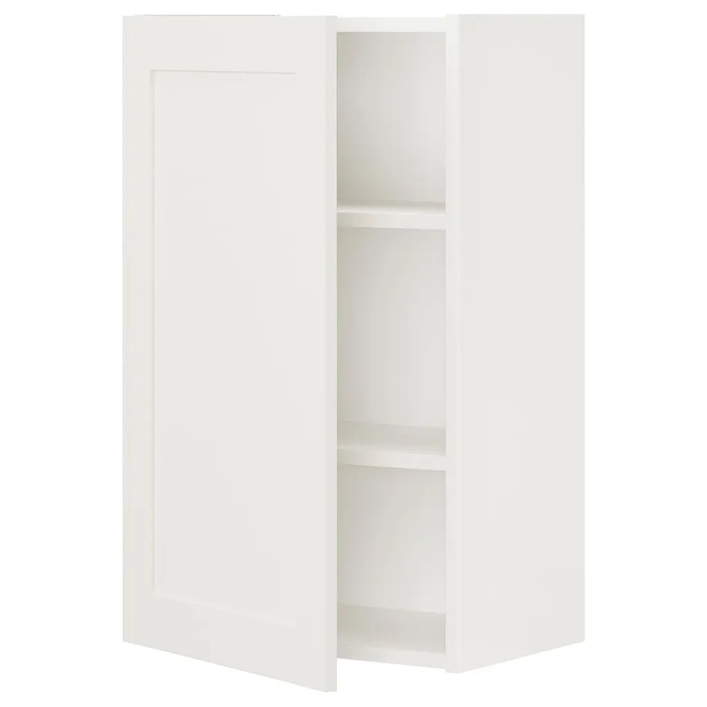 ENHET Wall cb w 2 shlvs/door - white/white frame 18x12 3/4x30 ". A white surface with a wide frame is like an empty canvas where your choice of accessories and accent colors sets the style. Modern or classic - you decide. Closed storage creates a calm and uniform expression in your room.