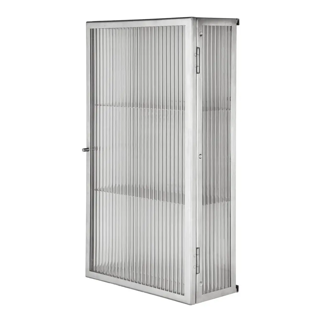 Profiling the same industrial aesthetic as our standalone Haze Vitrine, the Haze Wall Cabinet is, as its name suggests, a practical wall-mounted cabinet for storing smaller items. Crafted in powder-coated steel in a soft cashmere hue and fitted with elegant reeded glass panels and a door, it's the ideal solution for storing glasses in the kitchen or beauty essentials in the bathroom. It also works equally well in a hallway filled with everyday objects such as keys and sunglasses.