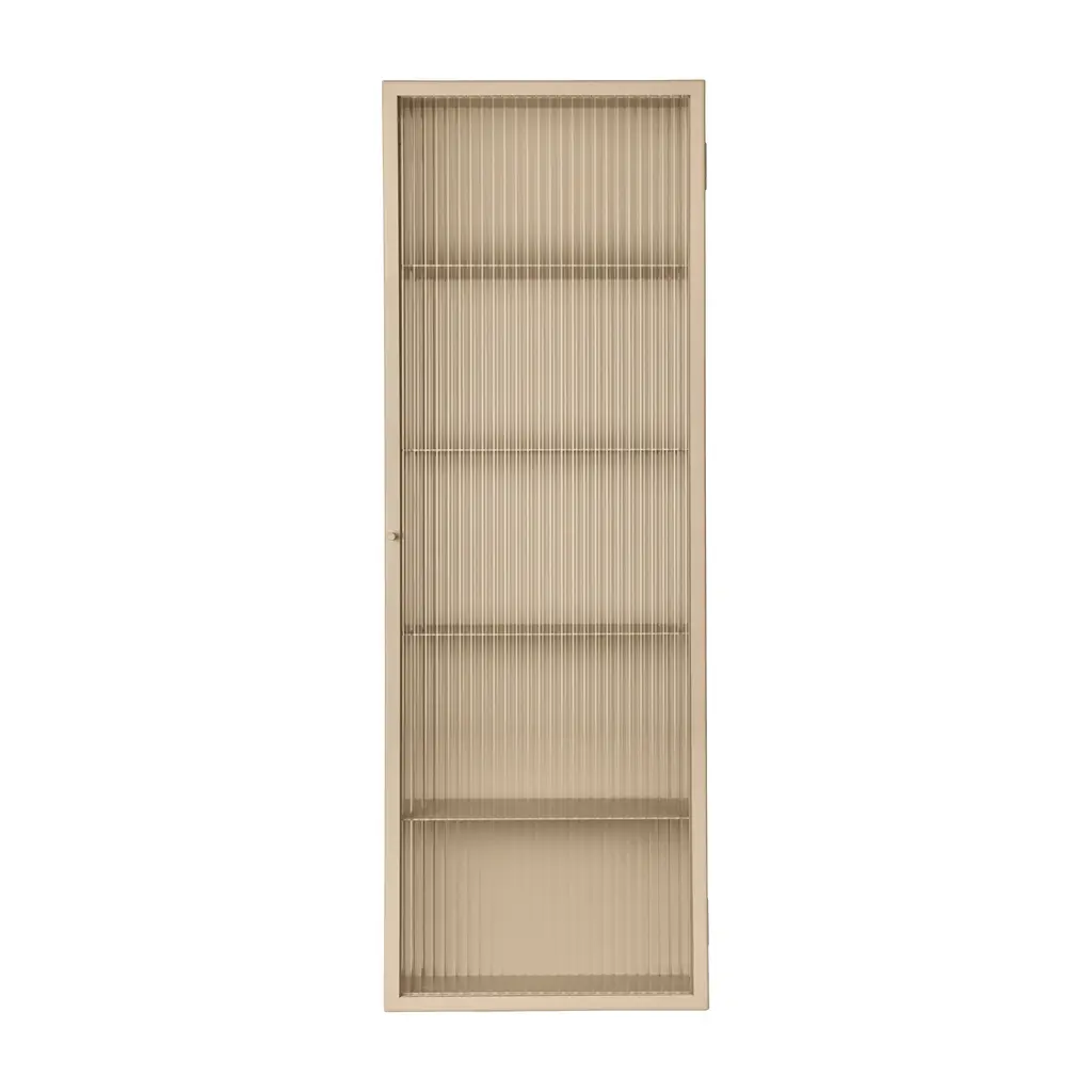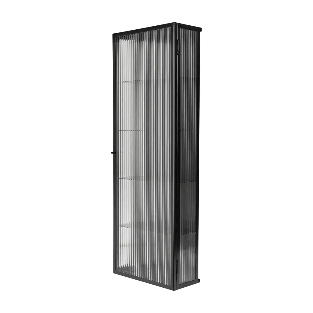 A perfect balance of industrial and elegant design, the Haze Wall Cabinet from Ferm Living is a stylish and versatile storage solution. This beautiful cabinet is crafted from a sleek, powder-coated steel frame and features a semi-transparent, reeded glass door. The reeded glass creates a sophisticated, blurred effect, elegantly concealing the cabinet's contents while adding a touch of visual texture. Designed for ultimate flexibility, the door can be hung to open from either the left or the right, making it a perfect fit for a bathroom, kitchen, or hallway. Highlights: