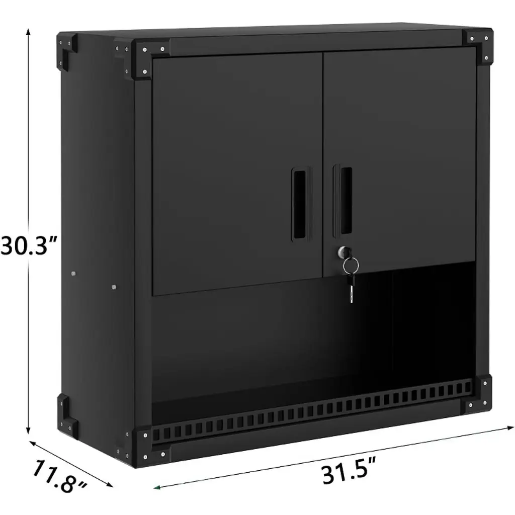Heavy Duty Wall Cabinet | Steel Hanging Storage w/Shelves & Lock | Rust Resistant Organizer for Garage, Workshop, Warehouse - Black