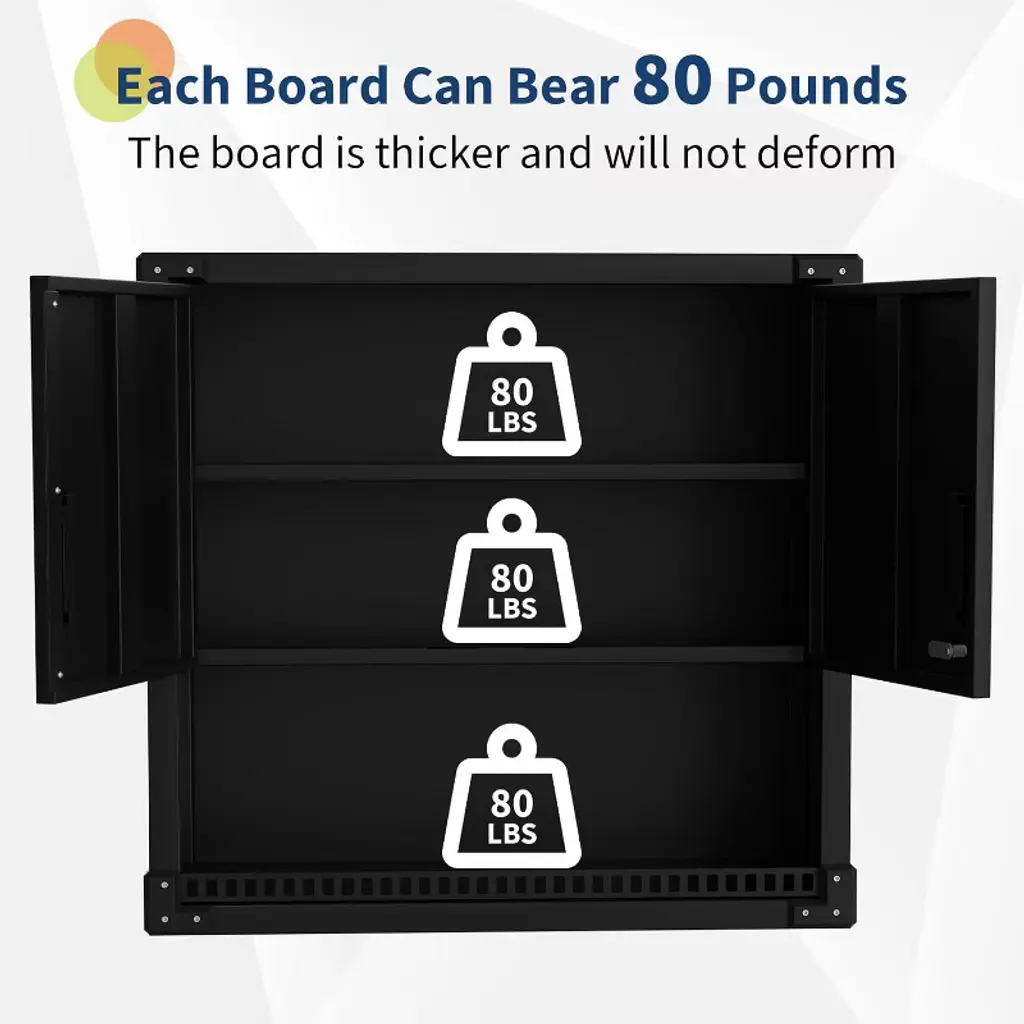 Heavy Duty Wall Cabinet | Steel Hanging Storage W/shelves & Lock | Rust Resistant Organizer For Garage, Workshop, Warehouse - Black