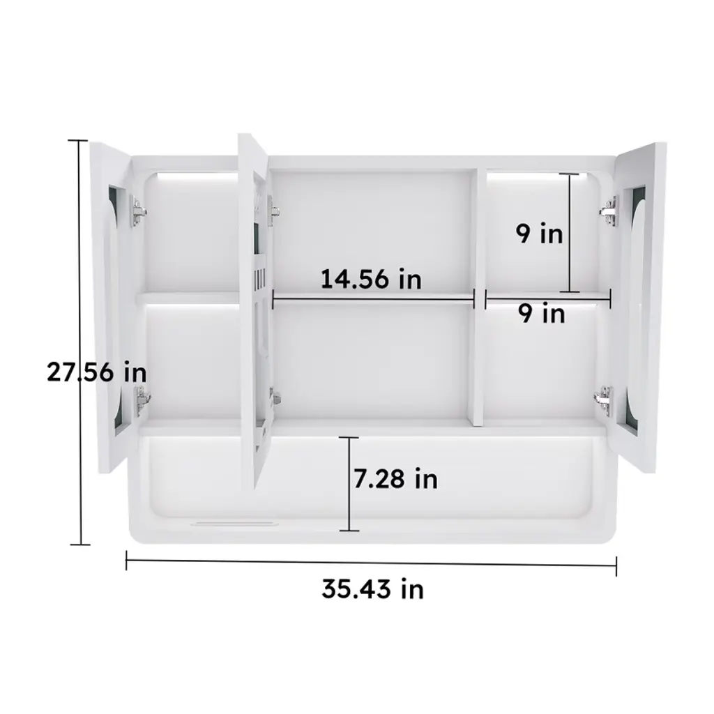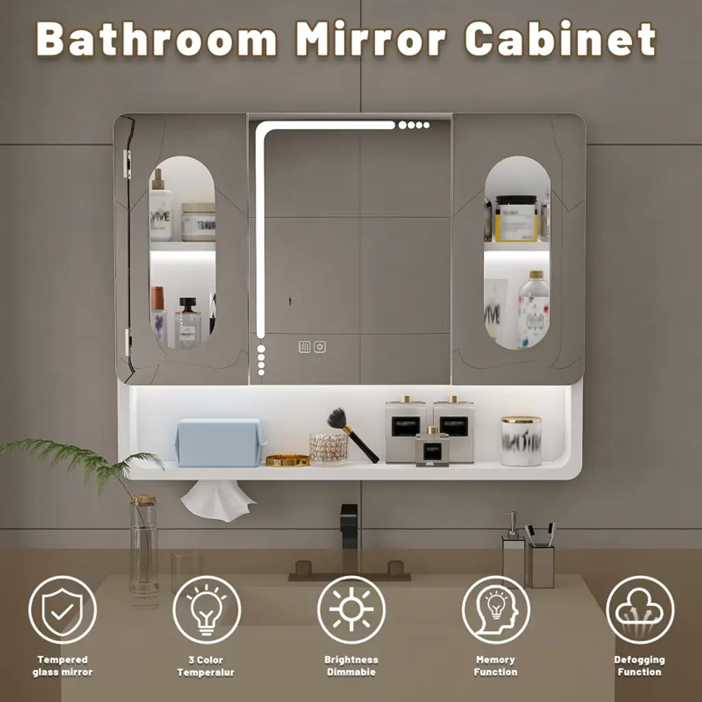 Ktmbdw Bathroom Medicine Cabinet, Bathroom Mirror Cabinet Wall Mounted With Open Storage Shelves, Wall Cabinet With Led Lights, Anti-fog, White