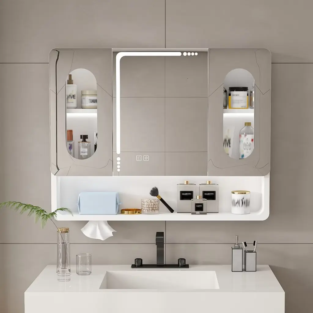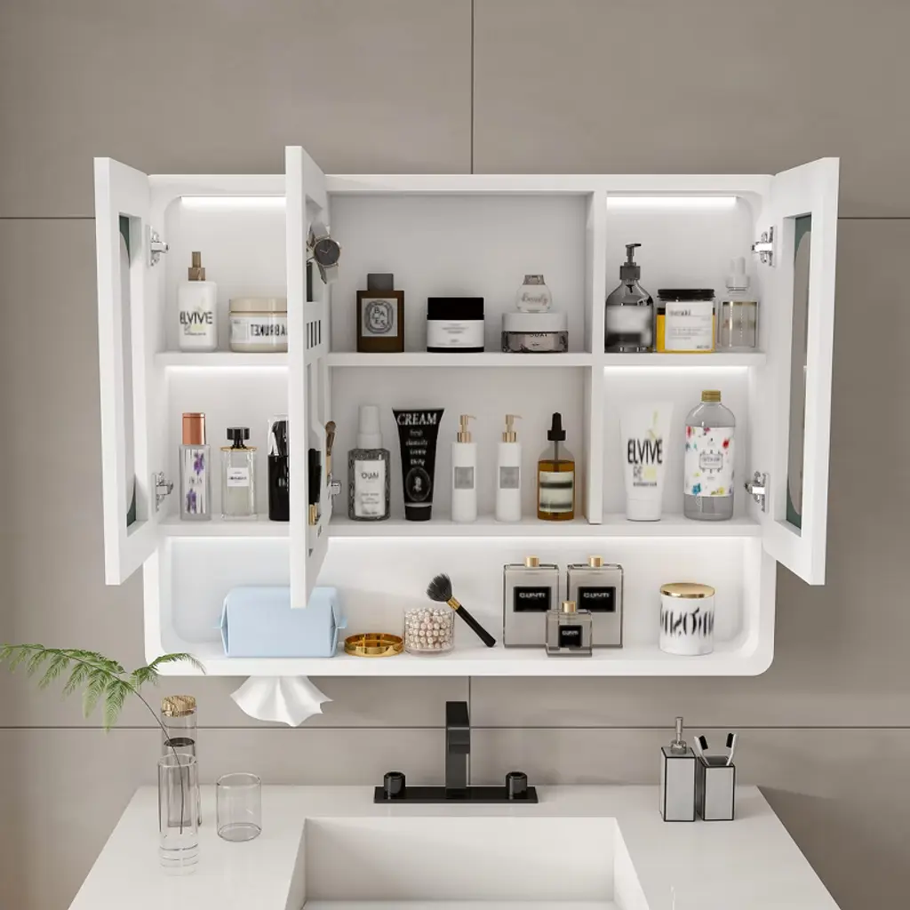 The bathroom mirror cabinet Its innovative wall-mounted design is the perfect solution for maximizing space. It provides generous storage for all your toiletries and accessories, drastically reducing clutter and increasing convenience without occupying any valuable floor space.