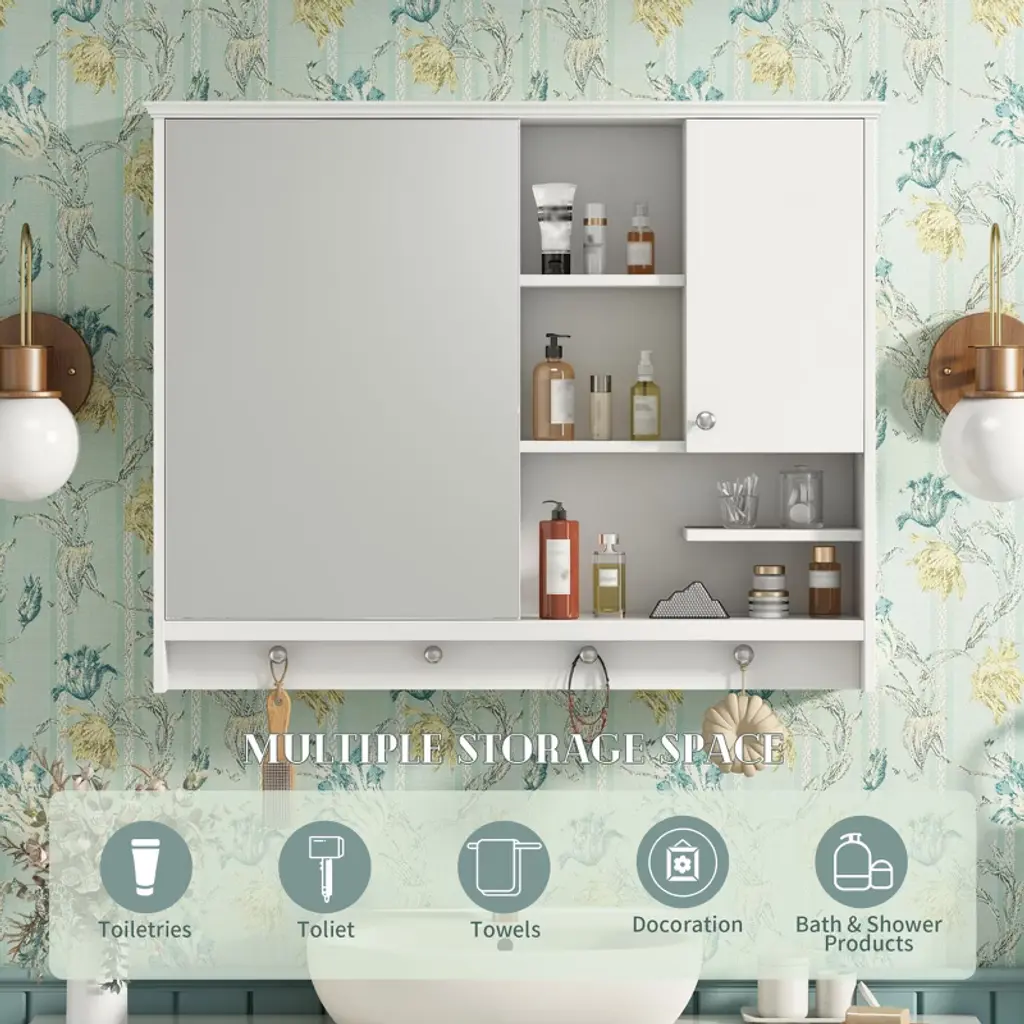 Kwpzqeb Bathroom Wall Cabinet, Over The Toilet Space Saver Storage Cabinet, Medicine Cabinet With Door And Adjustable Shelves For Bathroom, White