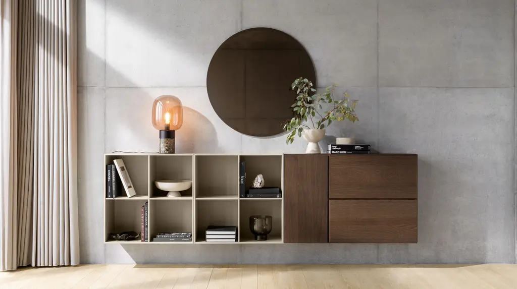 Looking sleek, elegant and exclusive, Lugano will solve all your storage needs without breaking a sweat. Show your treasures or hide your secrets with this modern wall system. Getting organized will never feel like a boring duty again.