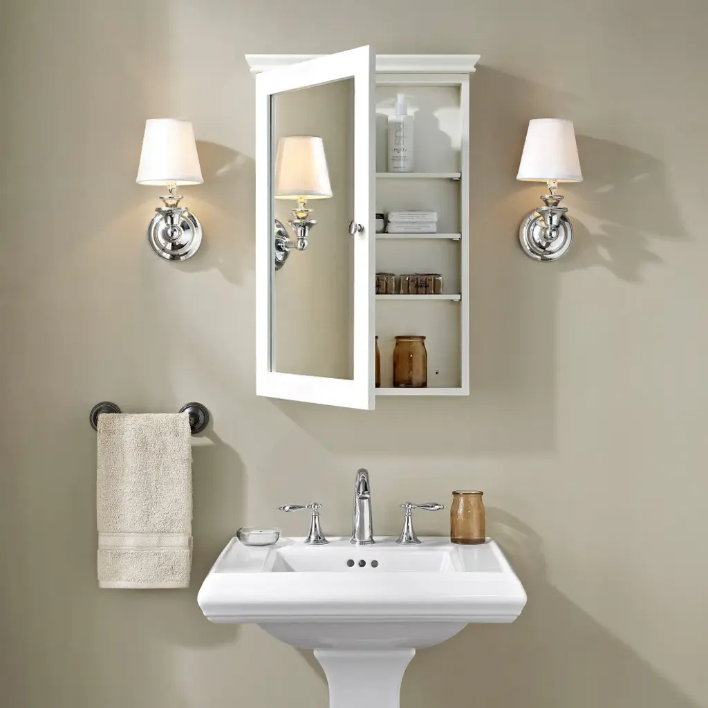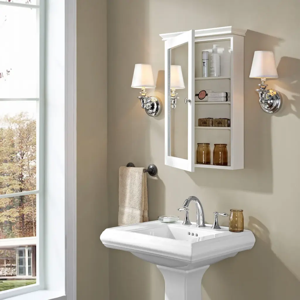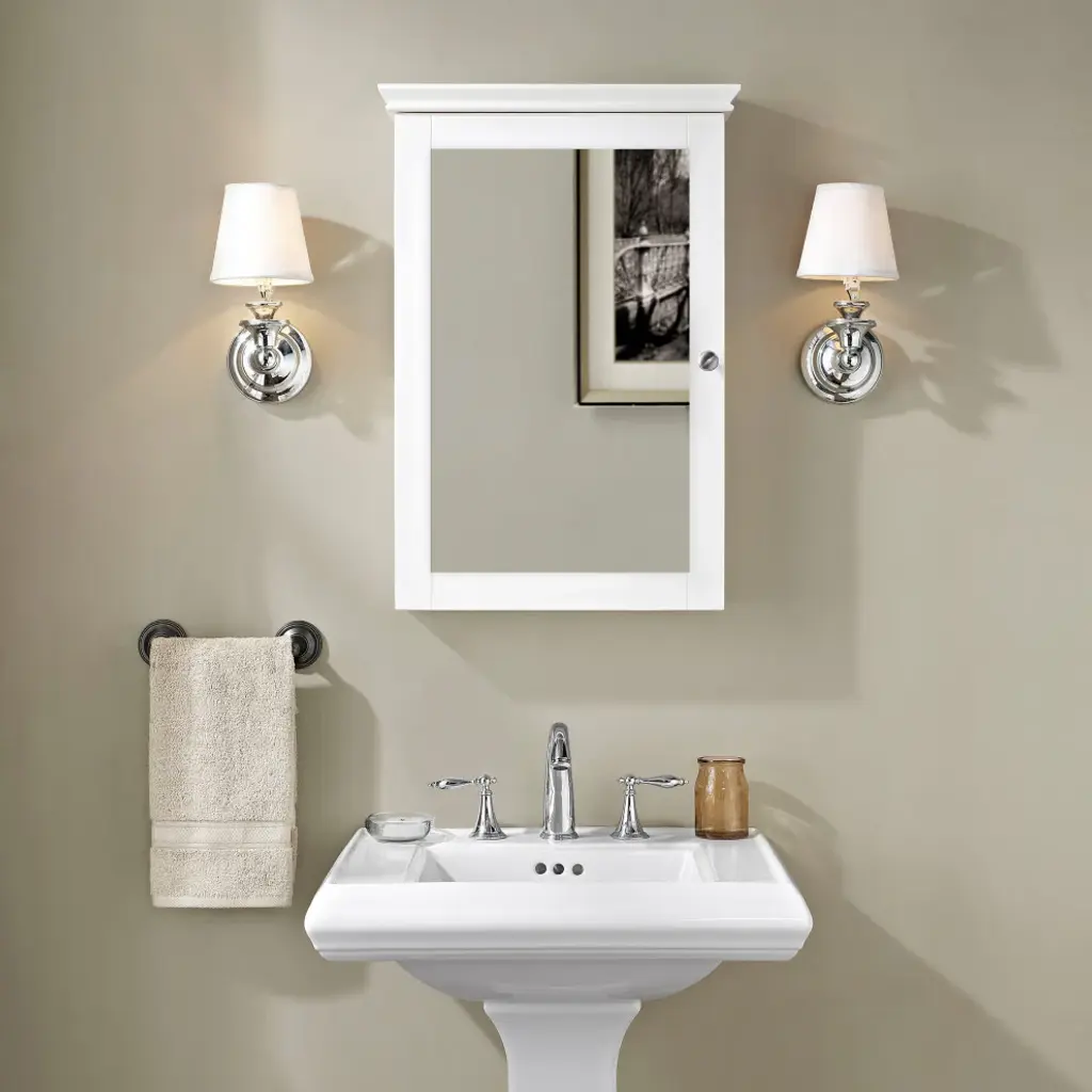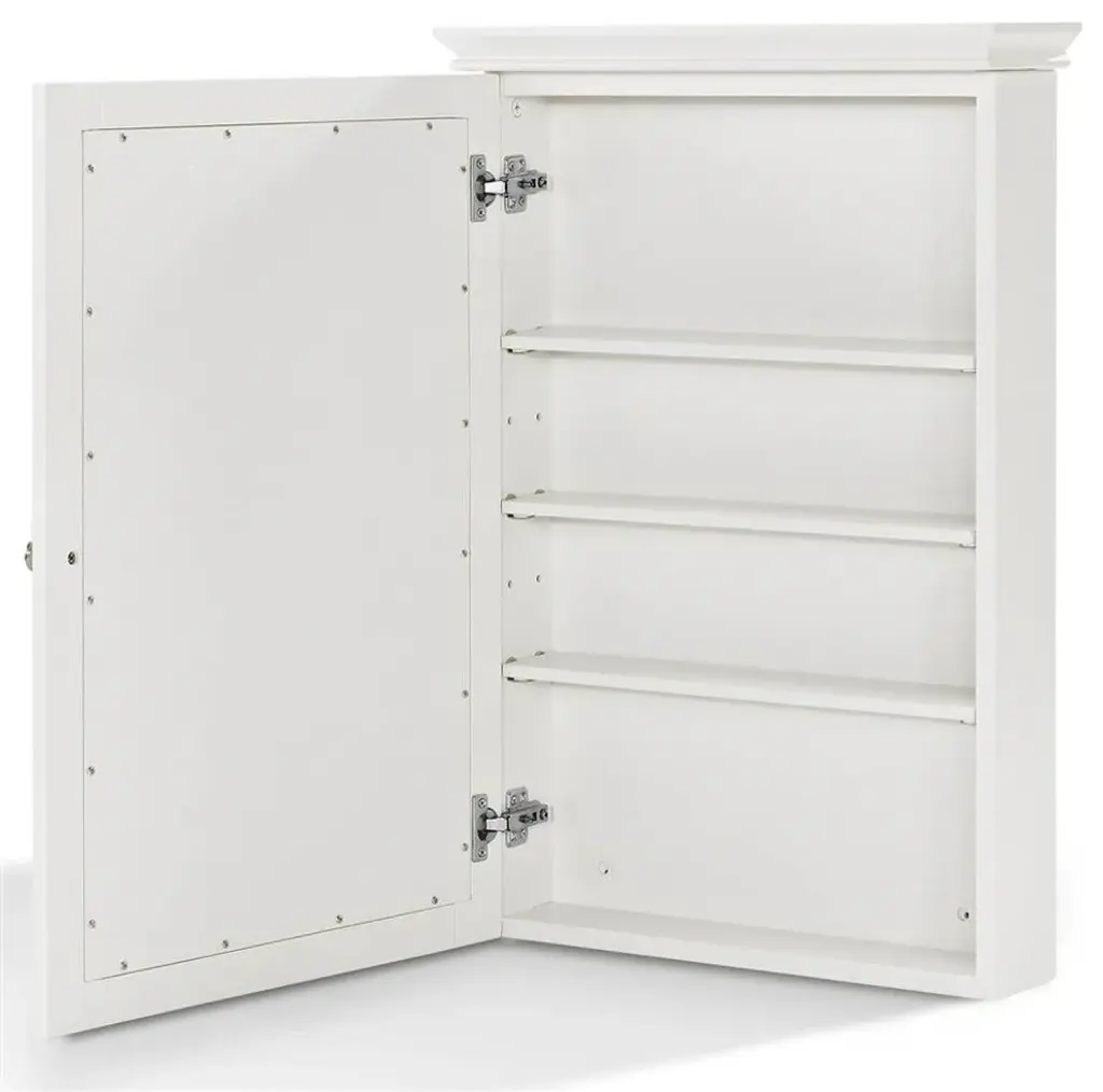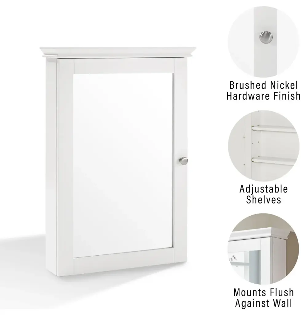 In a crisp white finish, the Lydia bath cabinet minimizes clutter without compromising on style. Expertly crafted in solid hardwood and veneers, this wall-mountable design from the Crosley collection is fitted with a spacious mirrored door that conceals generous storage space. Flared molding and metal hardware give it a smart, updated look that adapts well to any transitional setting.Wall-mountable bath cabinetLarge mirrored doorSolid hardwood and veneer constructionSpacious storageLight assembly required