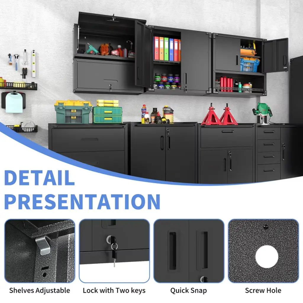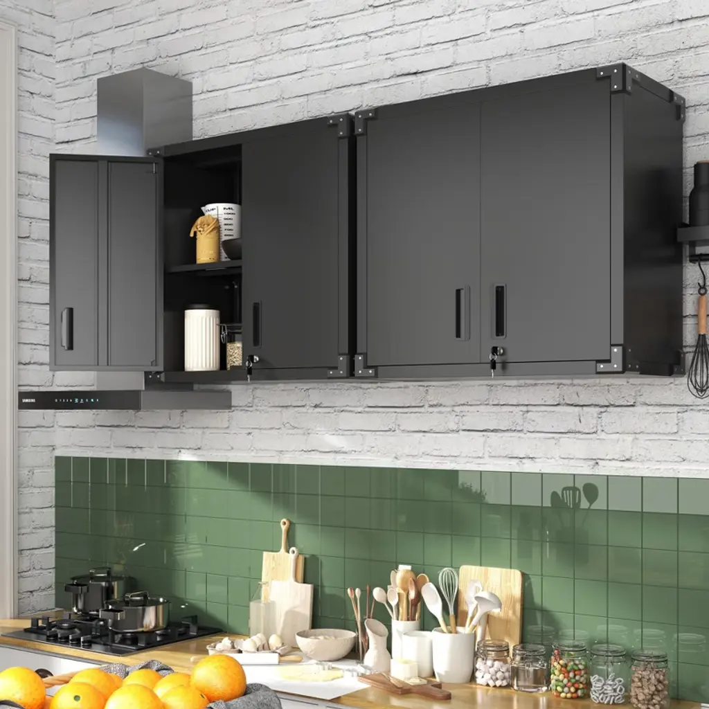 Munora - 2-door Metal Wall Cabinet With Adjustable Shelves - Lockable Tool Storage For Garage/utility Room - Black