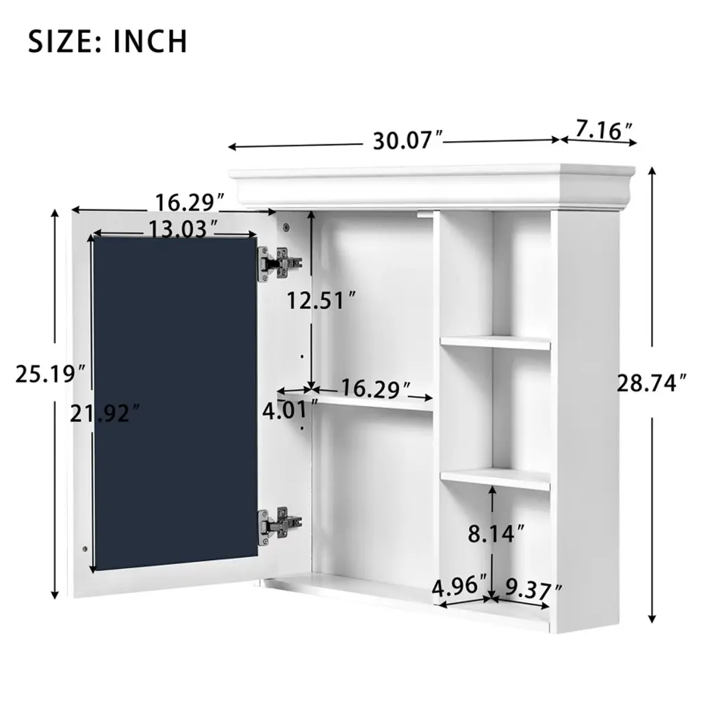 Okak Bathroom Storage Wall Cabinet With Mirror, Wall Mounted Mirror Cabinet, Over The Toilet Storage Cabinet, White