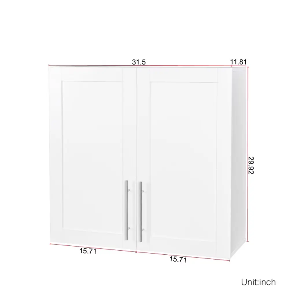 Rbied 31.5 In. W X 29.92 In. H White Wood Wall Mount Medicine Cabinet Without Mirror, Wall Cabinet With Adjustable Shelf