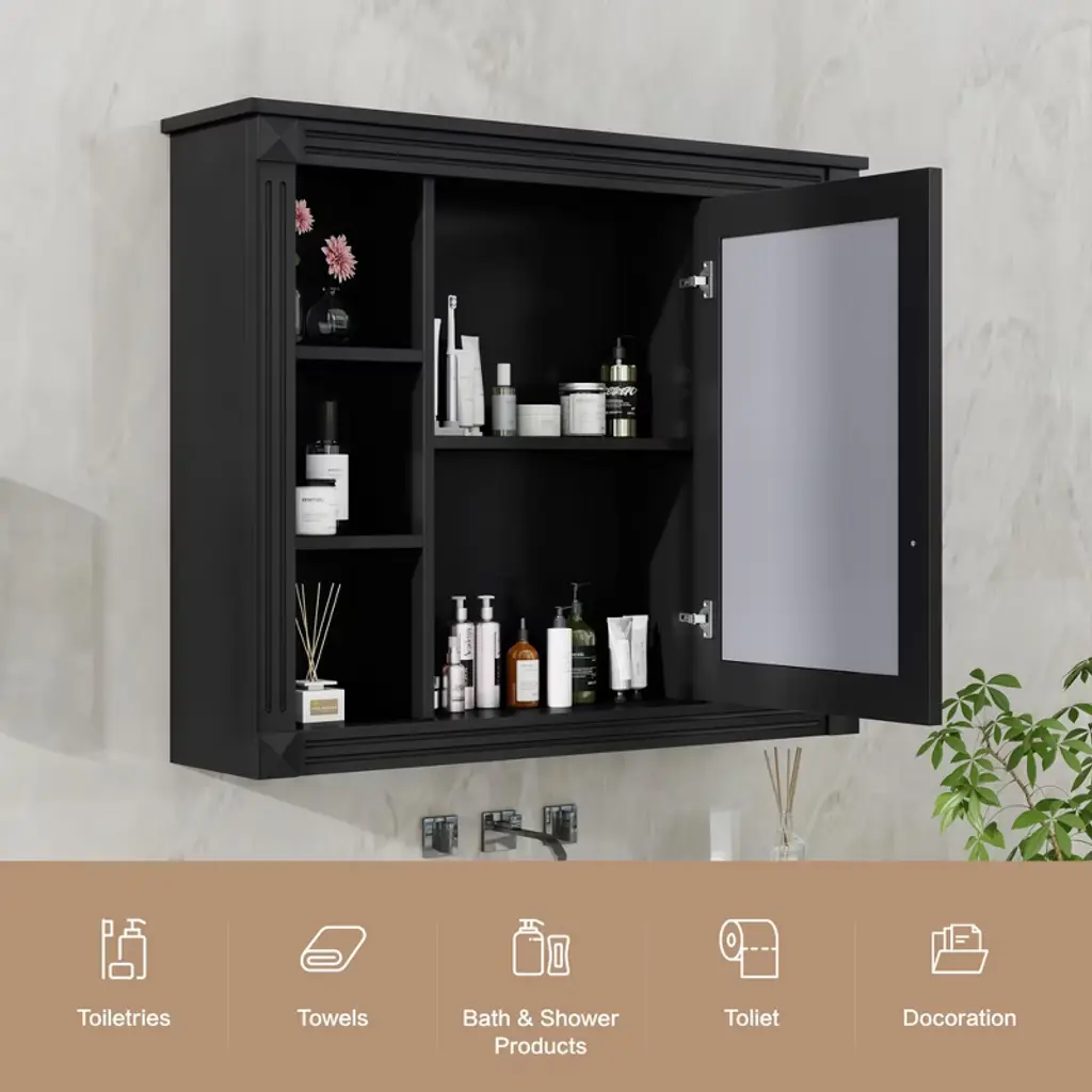 Rbied 35 In. W X 28.70 In. H Rectangular Wood Medicine Cabinet With Mirror, Bathroom Storage Cabinet Wall Cabinet With Open Shelves