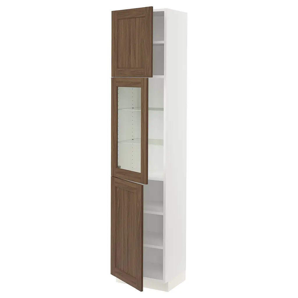 Sektion Corner Wall Cab W Shelves/glass Dr - White Enköping/brown Walnut Effect 26x15x30 "