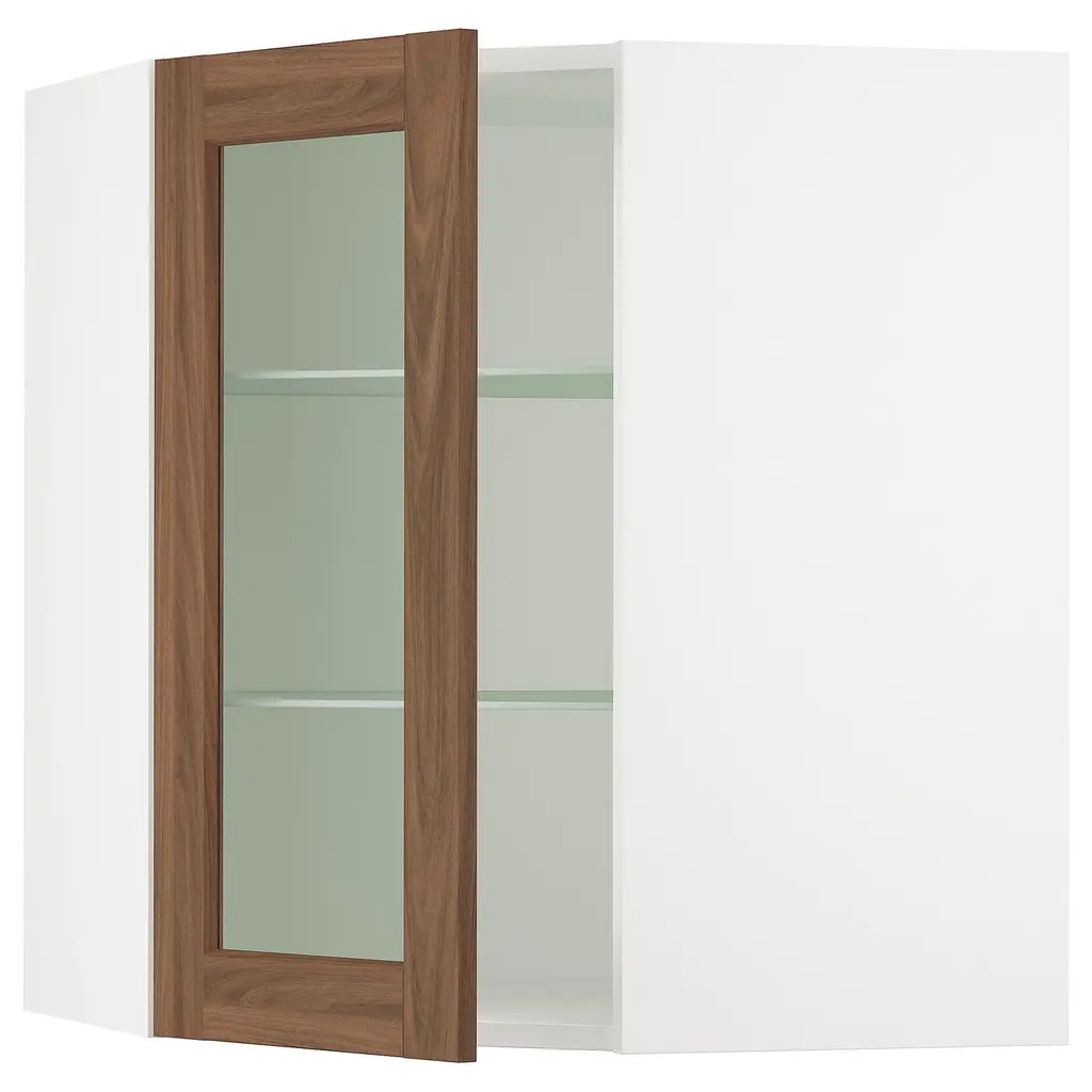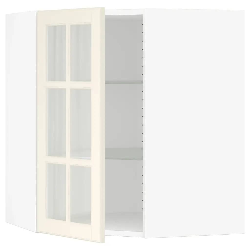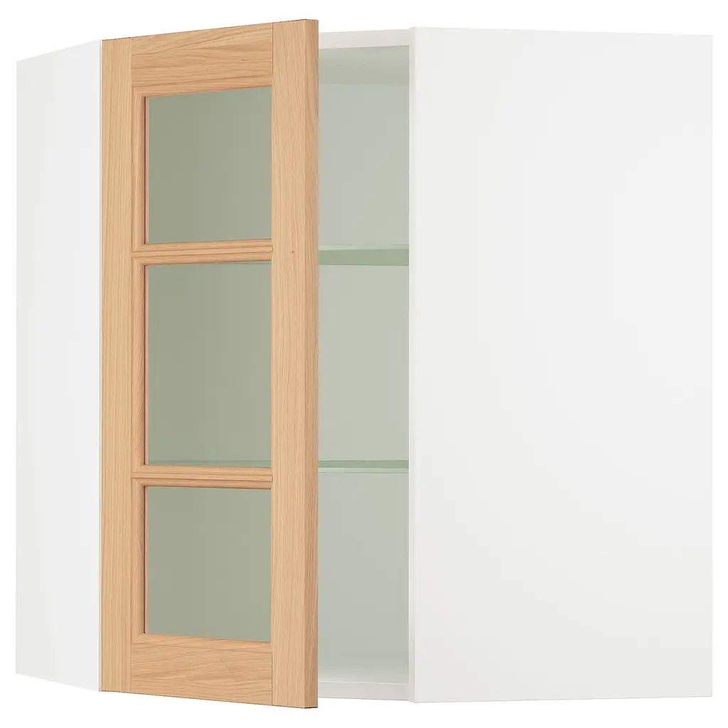 Sektion Corner Wall Cab W Shelves/glass Dr - White Enköping/white Wood Effect 26x15x30 "