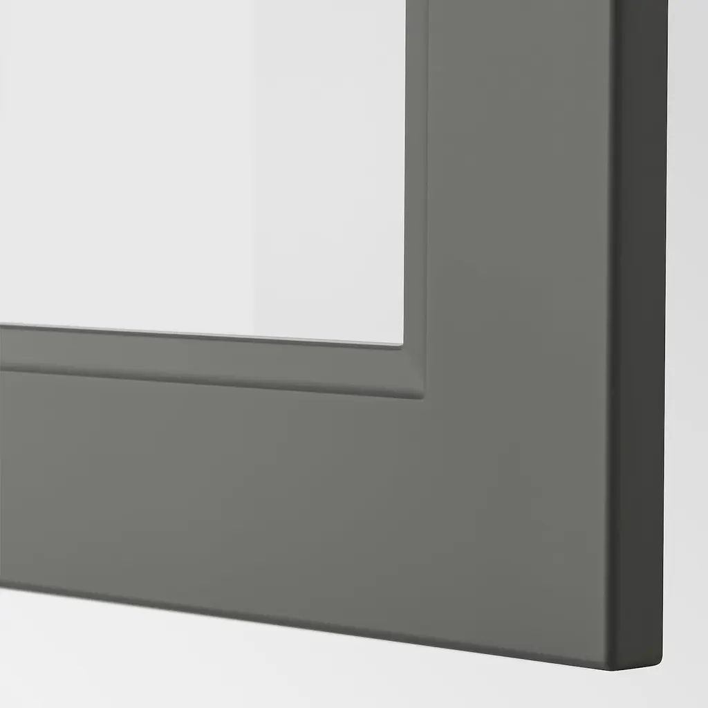 SEKTION Wall cab horizontal w 2 glass doors - white/Axstad dark gray 30x15x30 ". Sturdy frame construction, ¾" thick. 25-year Limited Warranty. Read about the terms in the Limited Warranty brochure. Suspension rail sold separately. To be finished with legs and plinth, sold separately.