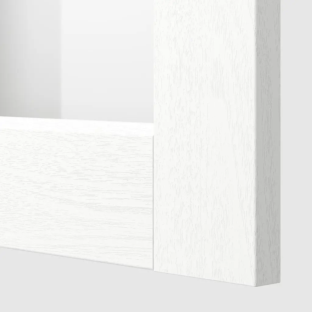 SEKTION Wall cab horizontal w glass door - white Enköping/white wood effect 30x15x15 ". Sturdy frame construction, ¾" thick. 25-year Limited Warranty. Read about the terms in the Limited Warranty brochure. Suspension rail sold separately. To be finished with legs and plinth, sold separately.