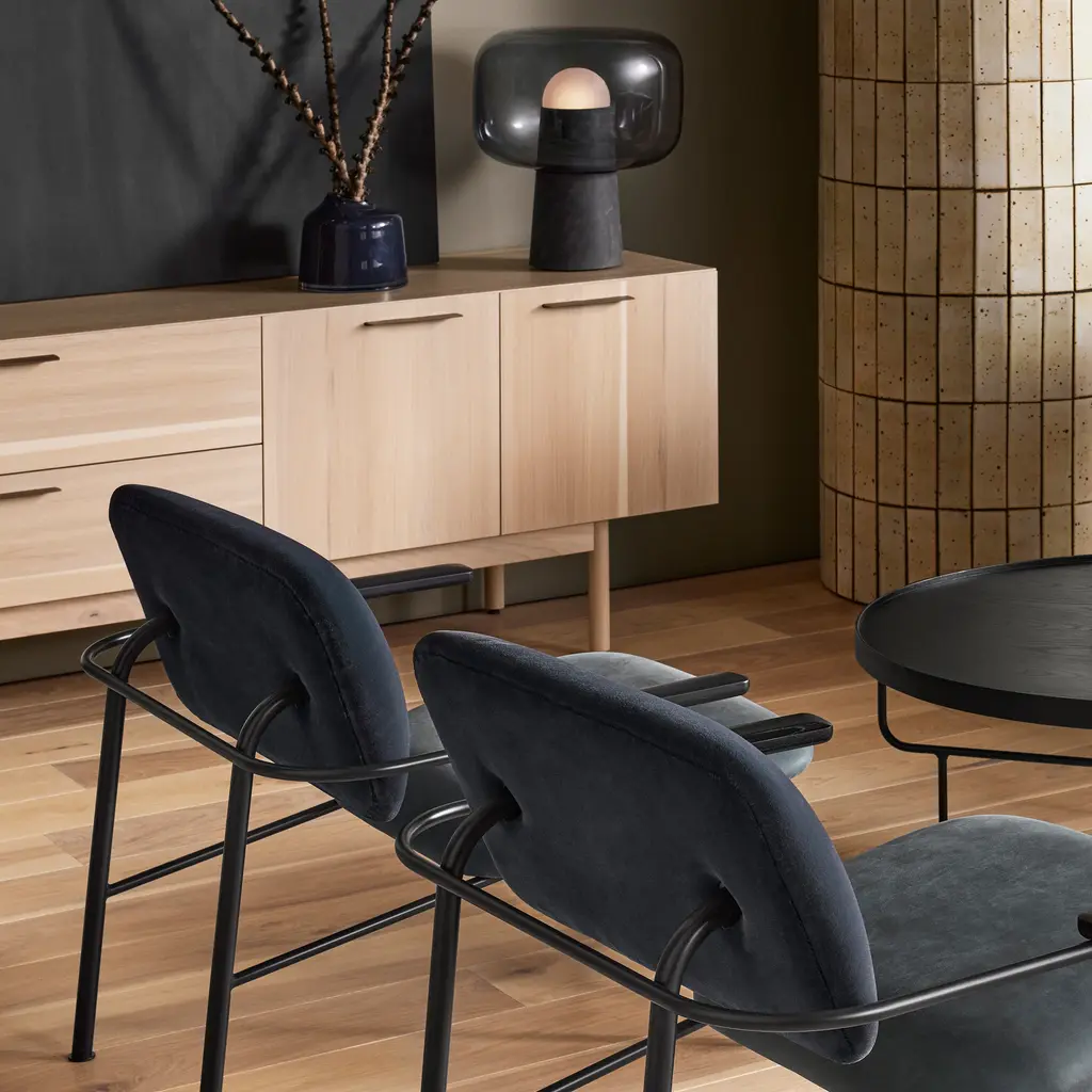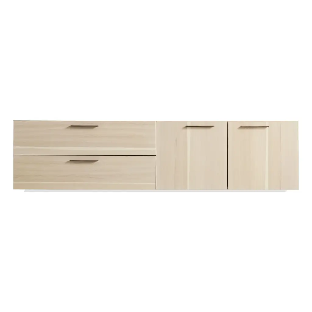 Beautility. Layers of clean details. Solid wood and full grain leather pulls add storage panache and practicality to the bedroom, living room or dining room. Cabinet mounts to the wall, so you can pick the height that is right for your space. Door units feature adjustable shelves and wire management holes. Features
