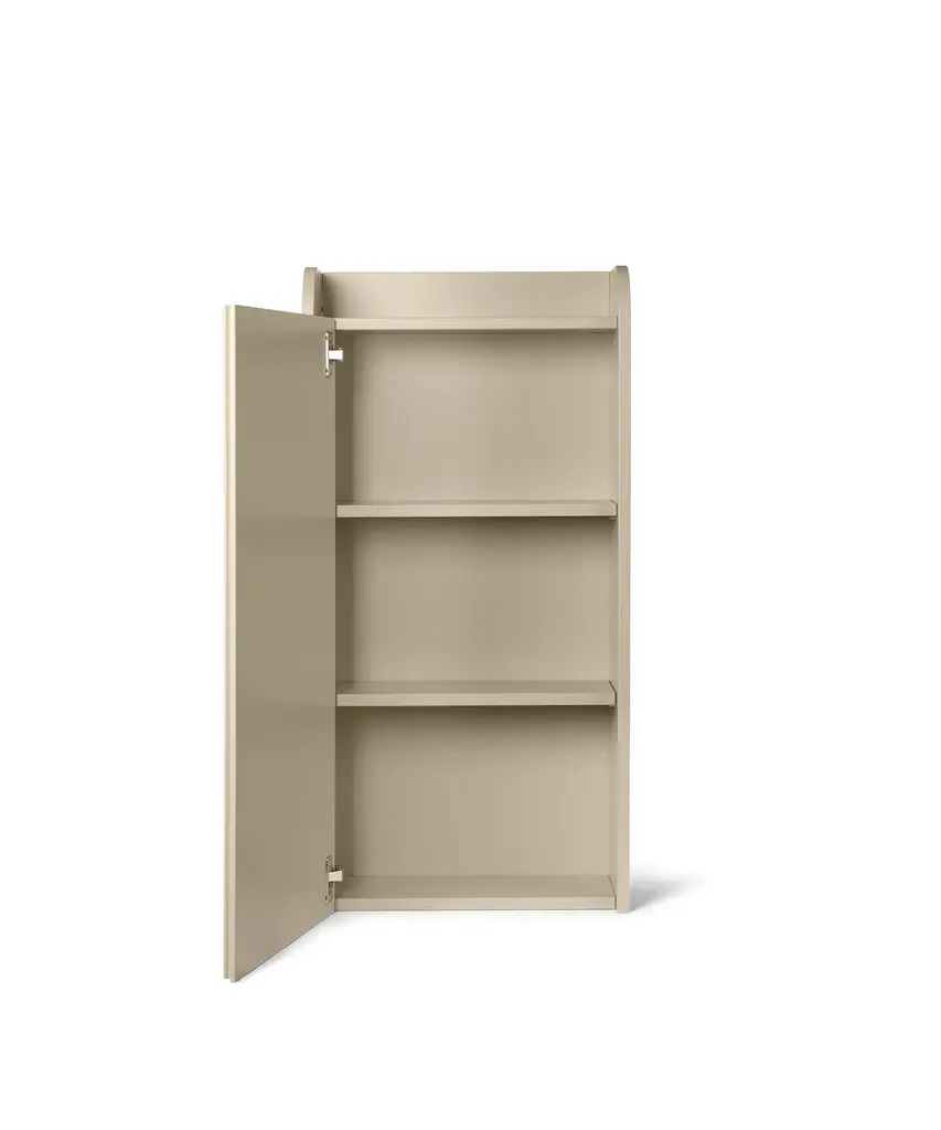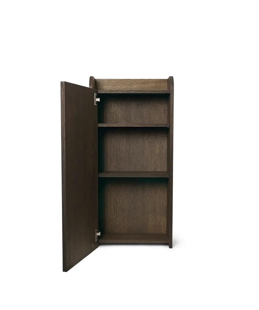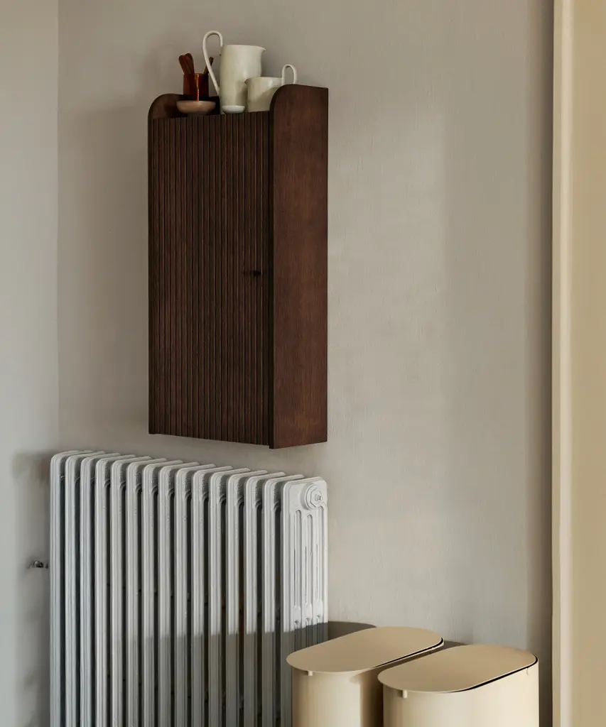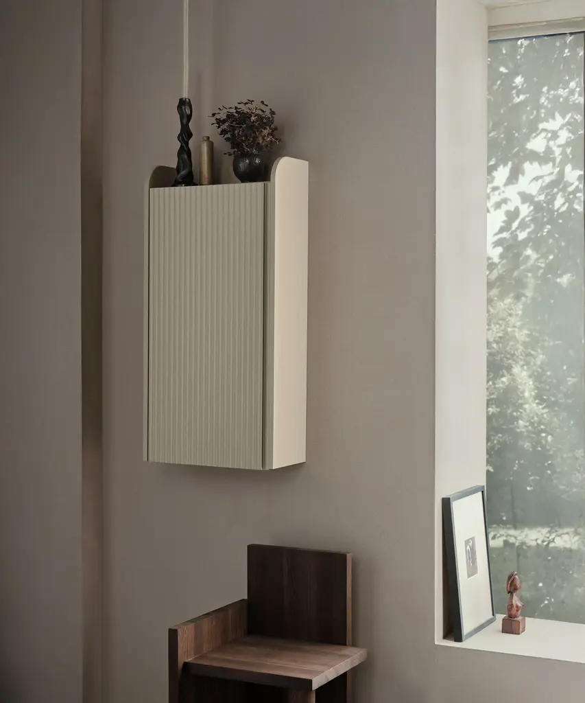 Made from FSC Mix certified oak veneer with an MDF core, the Sill Wall Cabinet offers a decorative and multipurpose storage solution. The name Sill stems from the French sillon, meaning carved grooves, which adorn the doors of the wall cabinet. Use the versatile and functional Sill Wall Cabinet throughout your home for your favorite cups in the kitchen, for your most cherished treasures in the living room or for keys and other miscellaneous items in the hallway. Designed and produced by the Copenhagen-based studio Ferm Living.