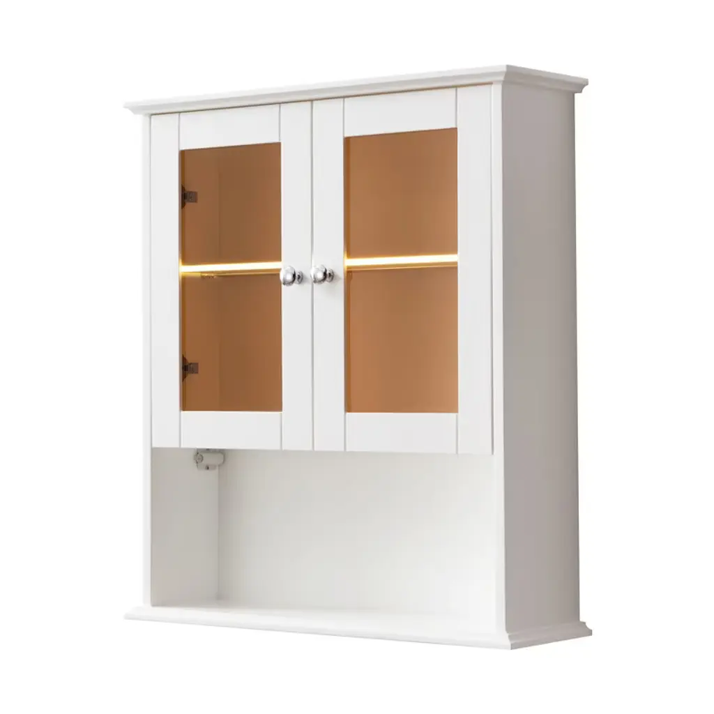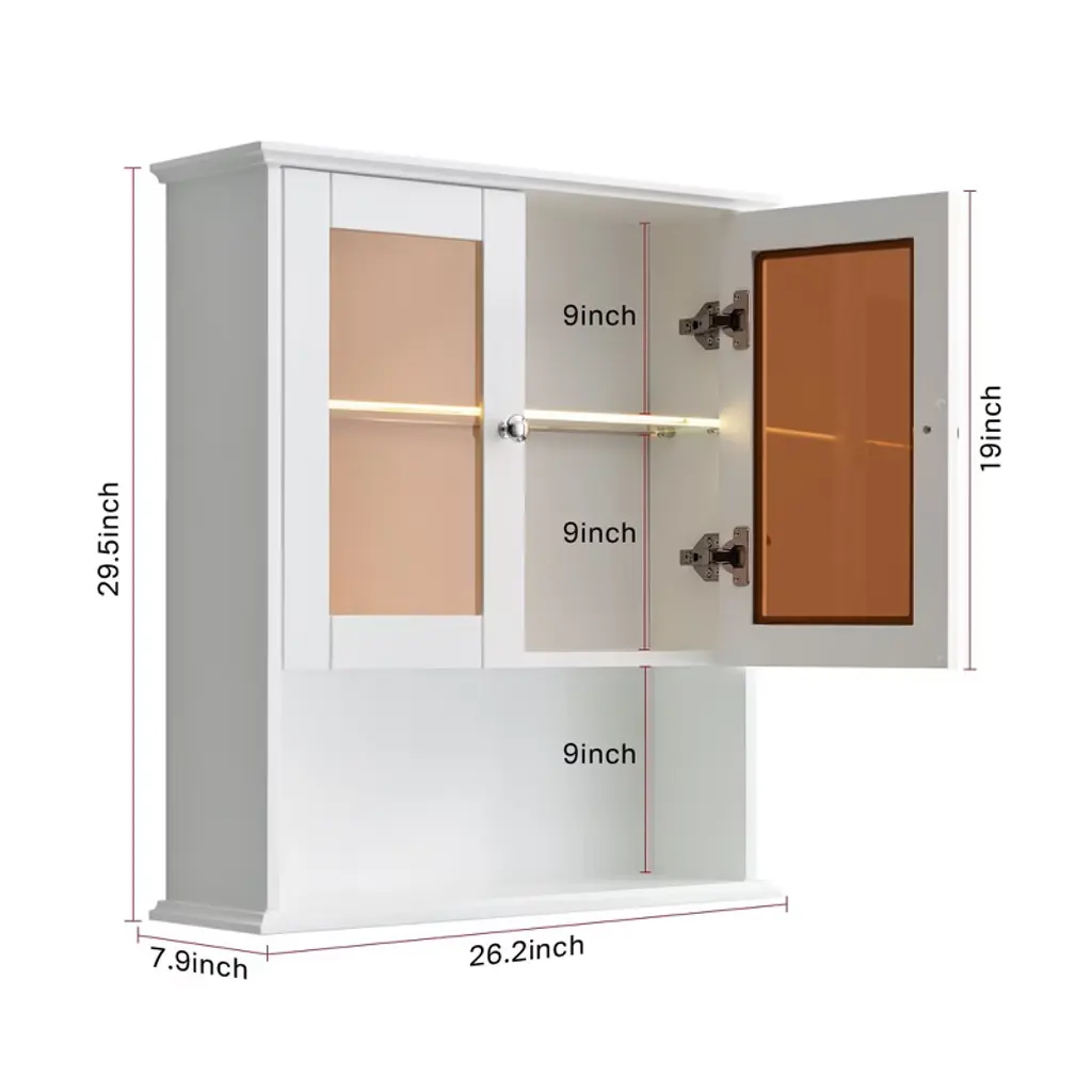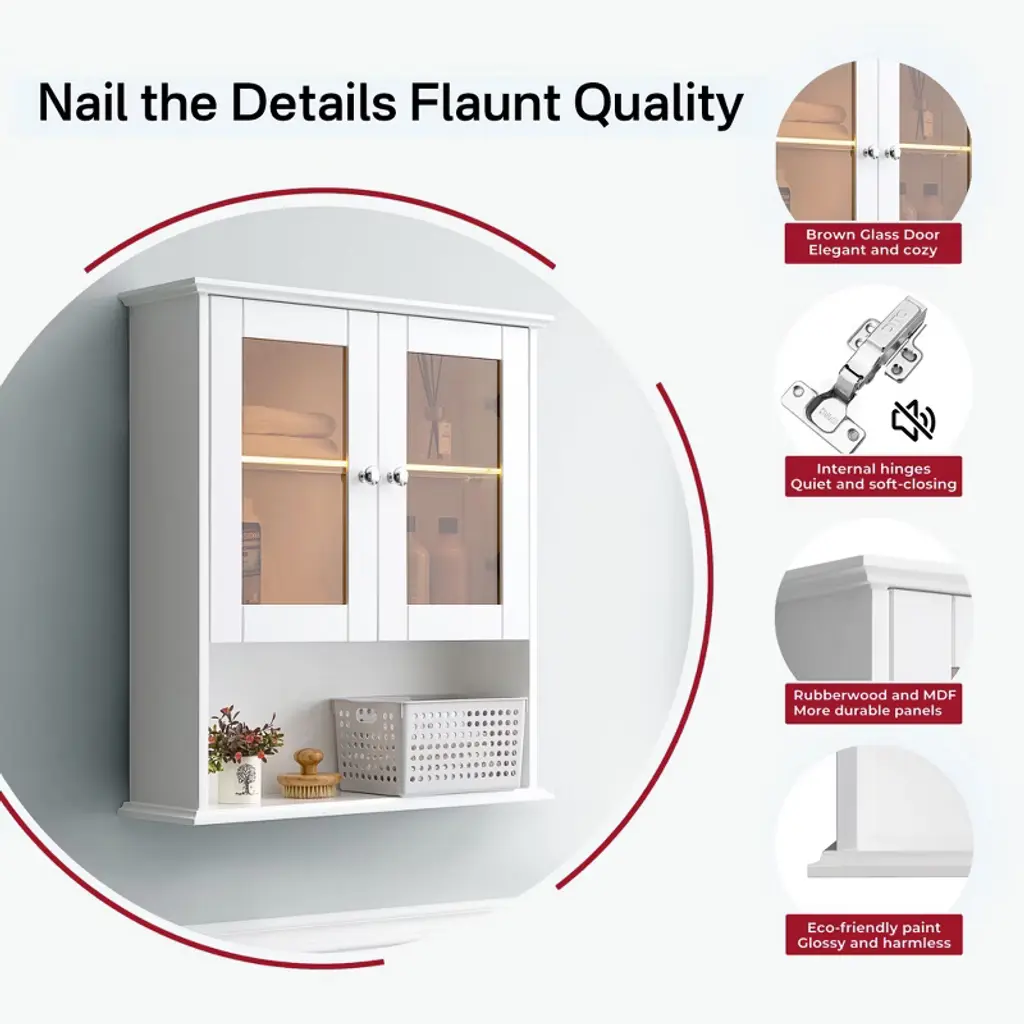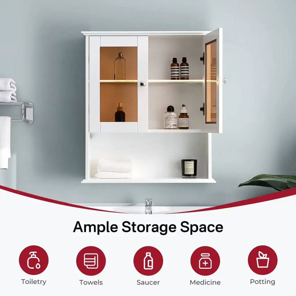 Vanirror Bathroom Wall Cabinet With Glass Doors, Wall Mounted Medicine Cabinet, Over The Toilet Storage Cabinet For Bathroom Bedroom Living Room White