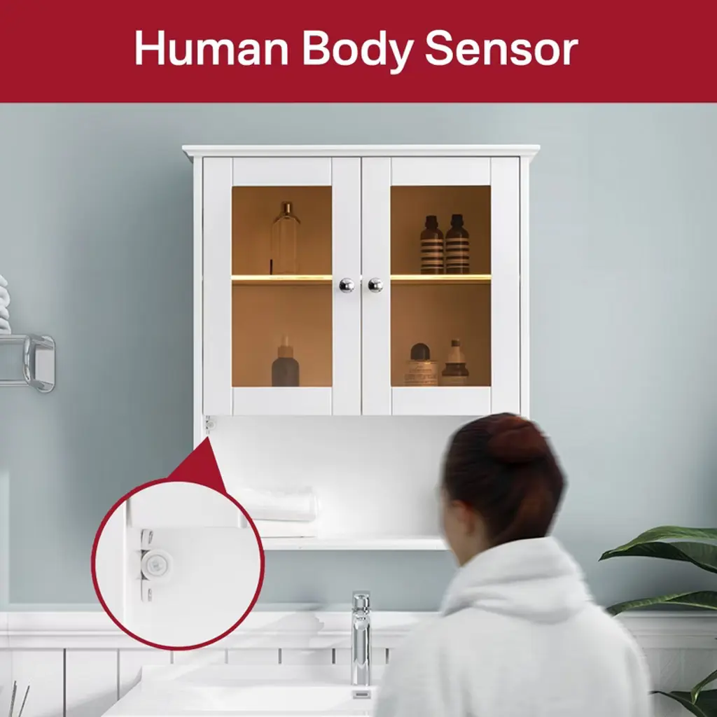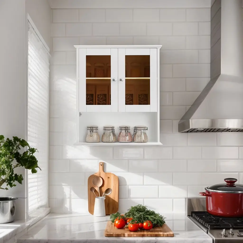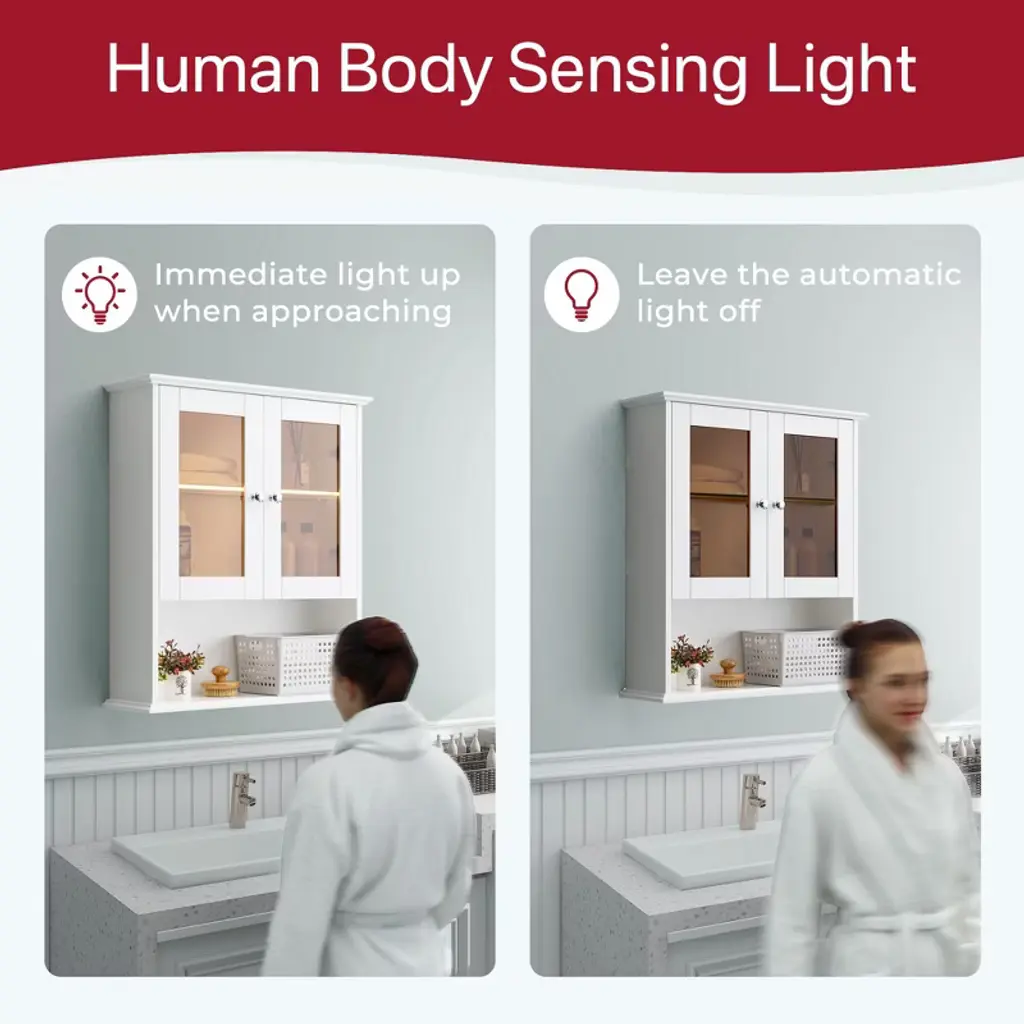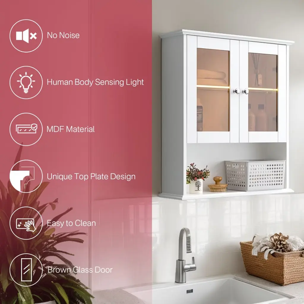 Vanirror Bathroom Wall Cabinet With Glass Doors, Wall Mounted Medicine Cabinet, Over The Toilet Storage Cabinet For Bathroom Bedroom Living Room White