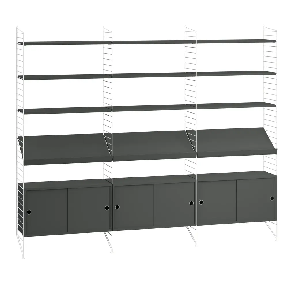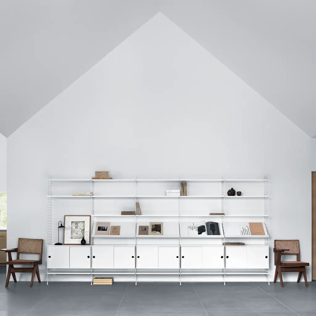 The Vertical Wall Cabinet Shelving Unit V1 from String Furniture easily allows for creative storage solutions in any home. From organizing magazines on the shelves and drawers to displaying your favorite pair of heels on the higher floor panels, you can customize the combination to suit your needs. With its unique design and timeless sophistication, it will bring an elegant and tasteful look to any home. Highlights For in-stock custom color and configurations please call sales team at (888) 222-4410