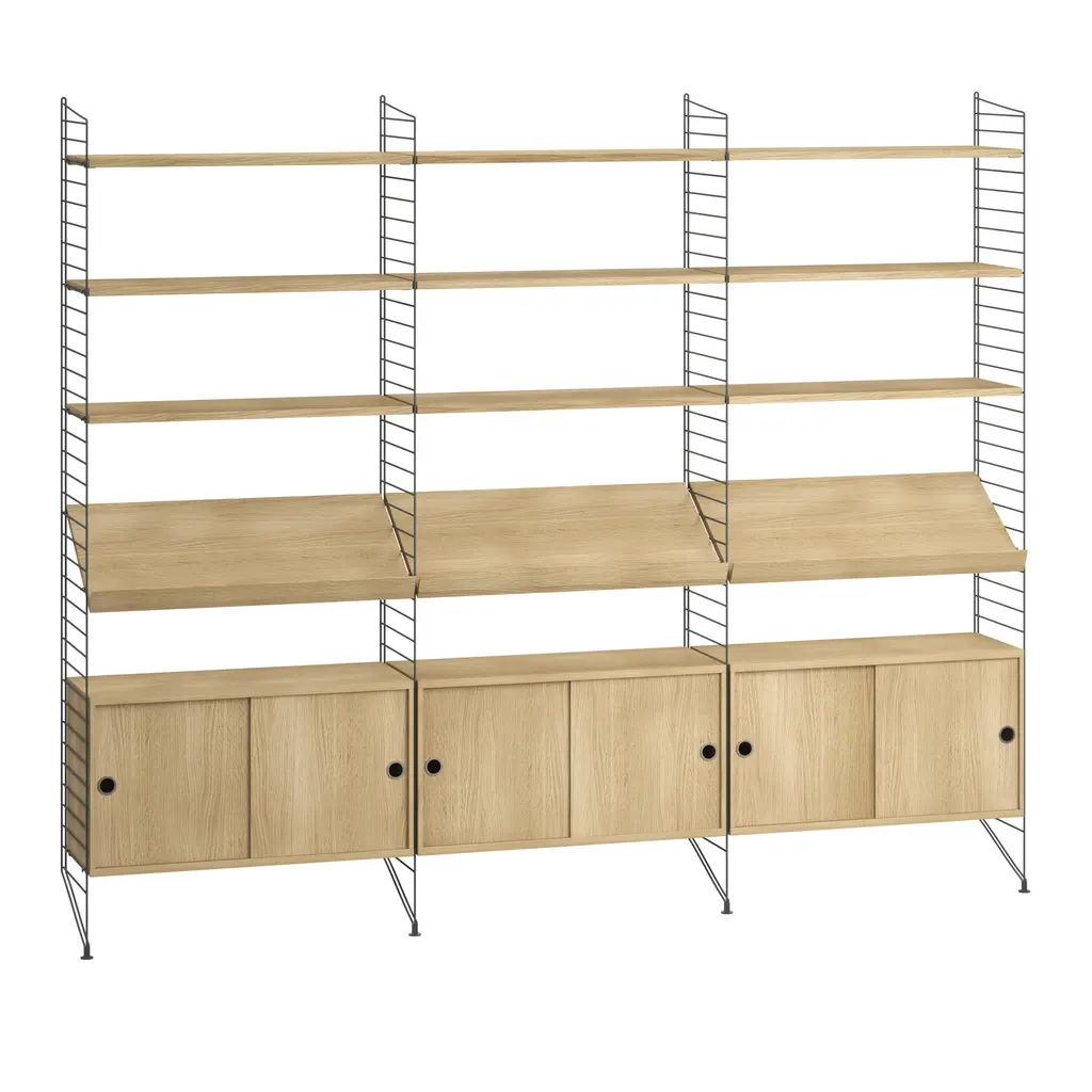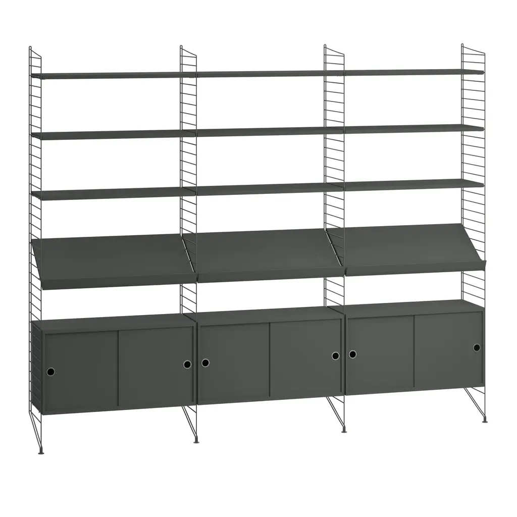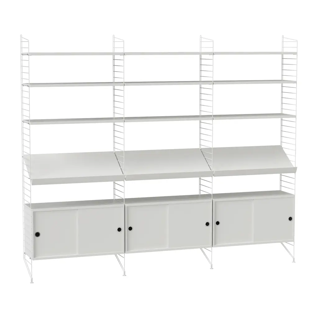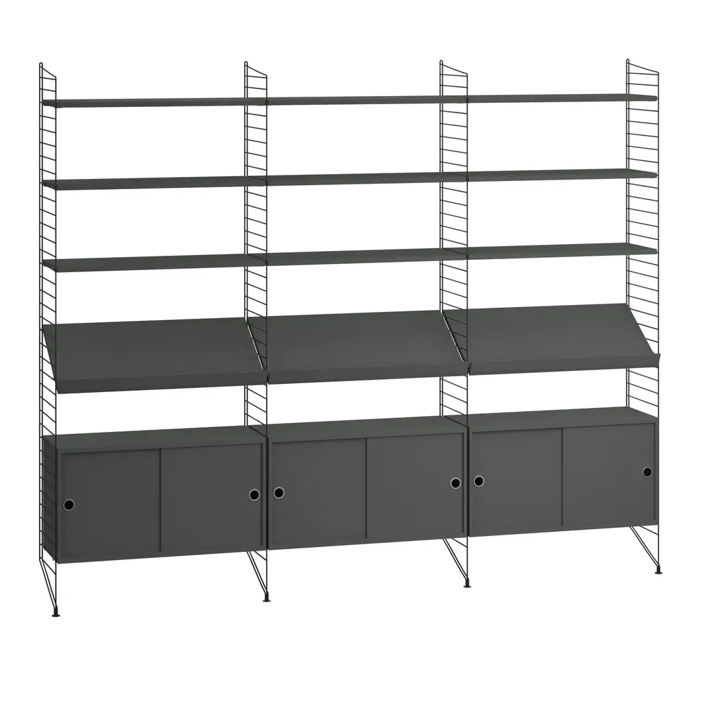 The Vertical Wall Cabinet Shelving Unit V1 from String Furniture easily allows for creative storage solutions in any home. From organizing magazines on the shelves and drawers to displaying your favorite pair of heels on the higher floor panels, you can customize the combination to suit your needs. With its unique design and timeless sophistication, it will bring an elegant and tasteful look to any home. Highlights For in-stock custom color and configurations please call sales team at (888) 222-4410