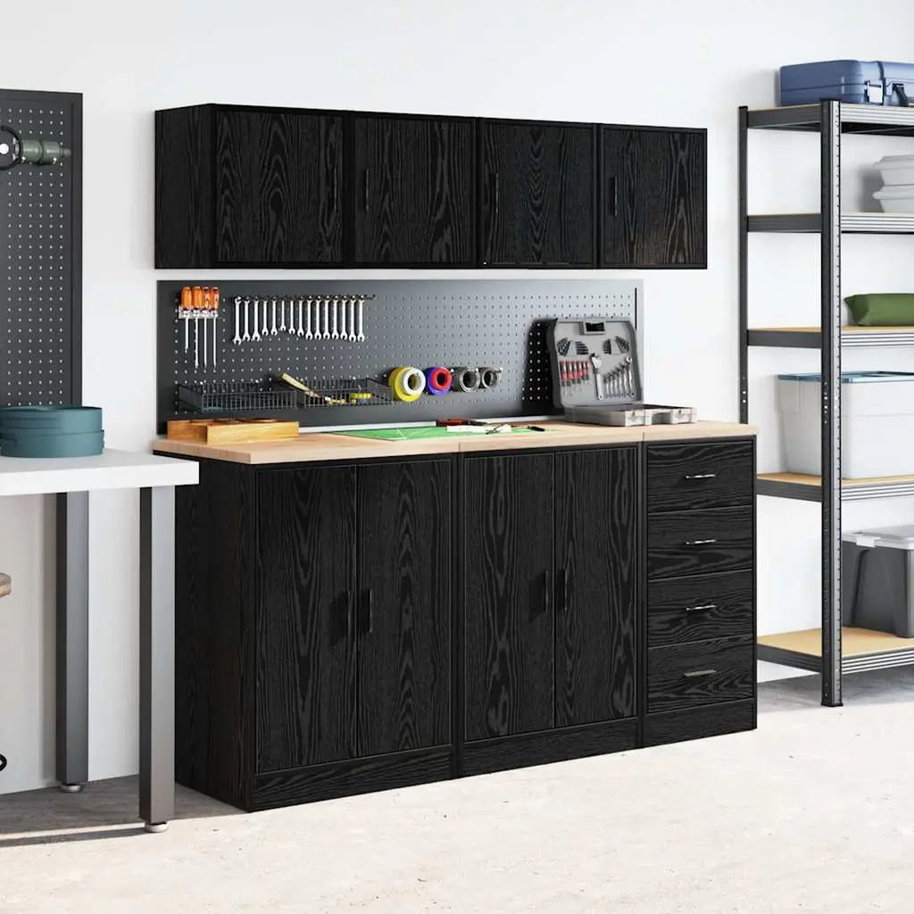 Vidaxl Garage Wall Cabinets 2 Pcs Black Engineered Wood