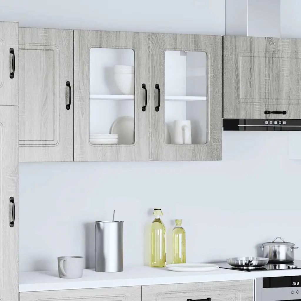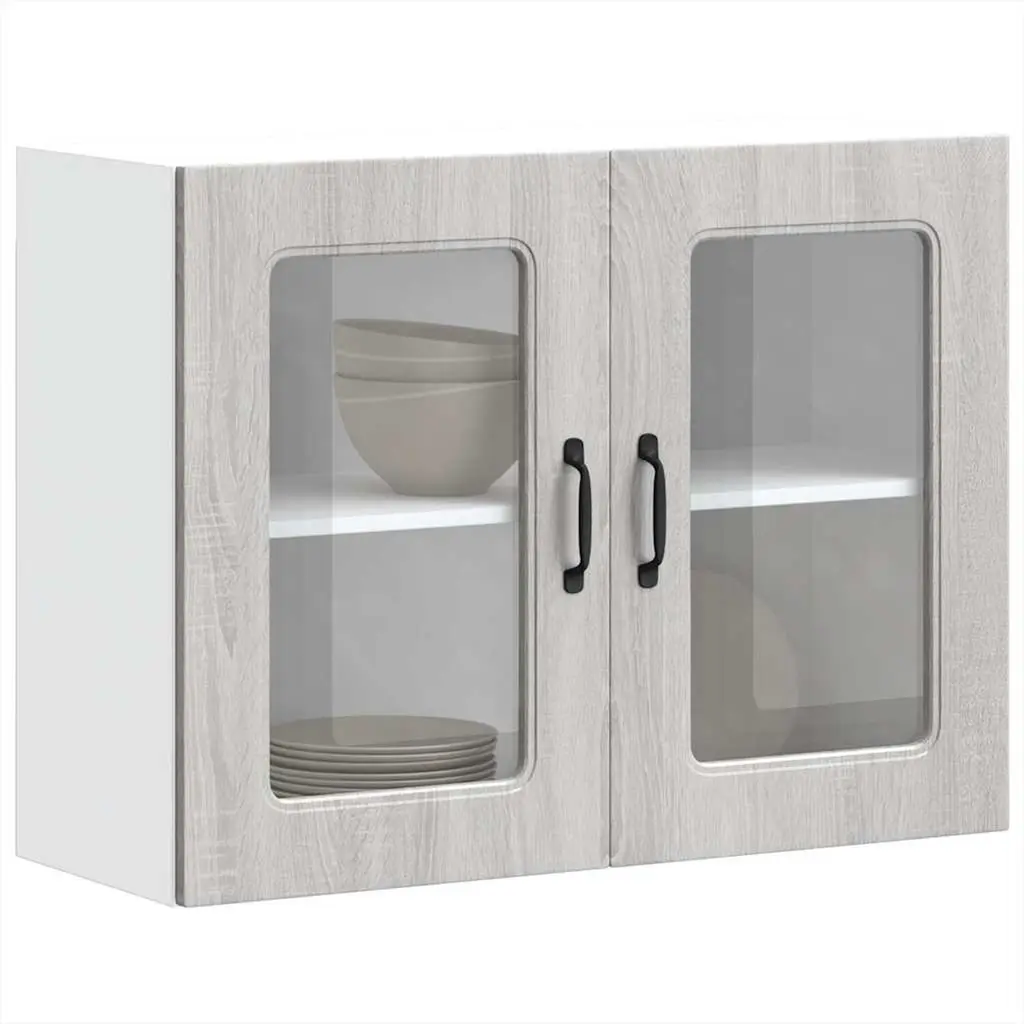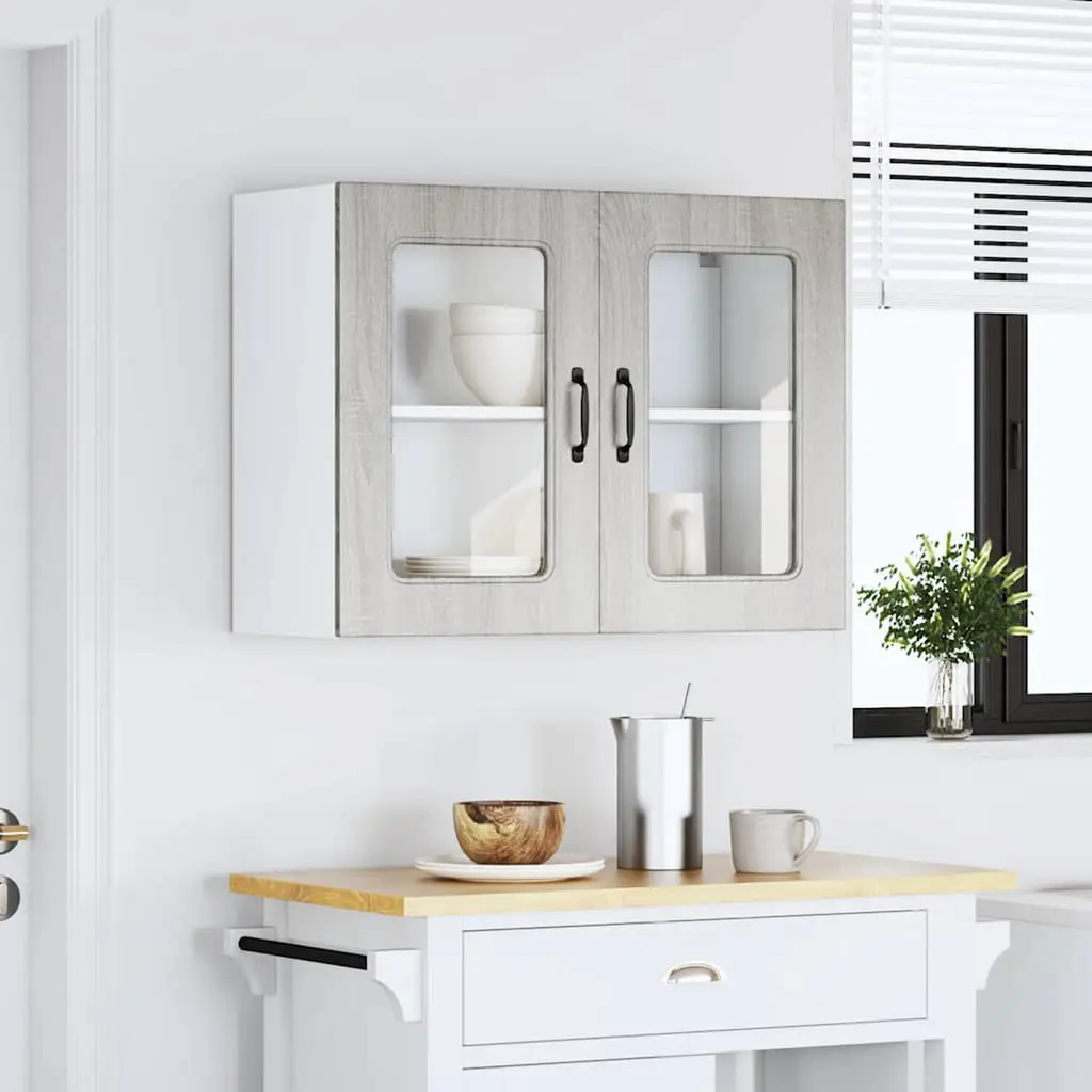 Vidaxl Kitchen Wall Cabinet Grey Sonoma Engineered Wood And Glass Medium