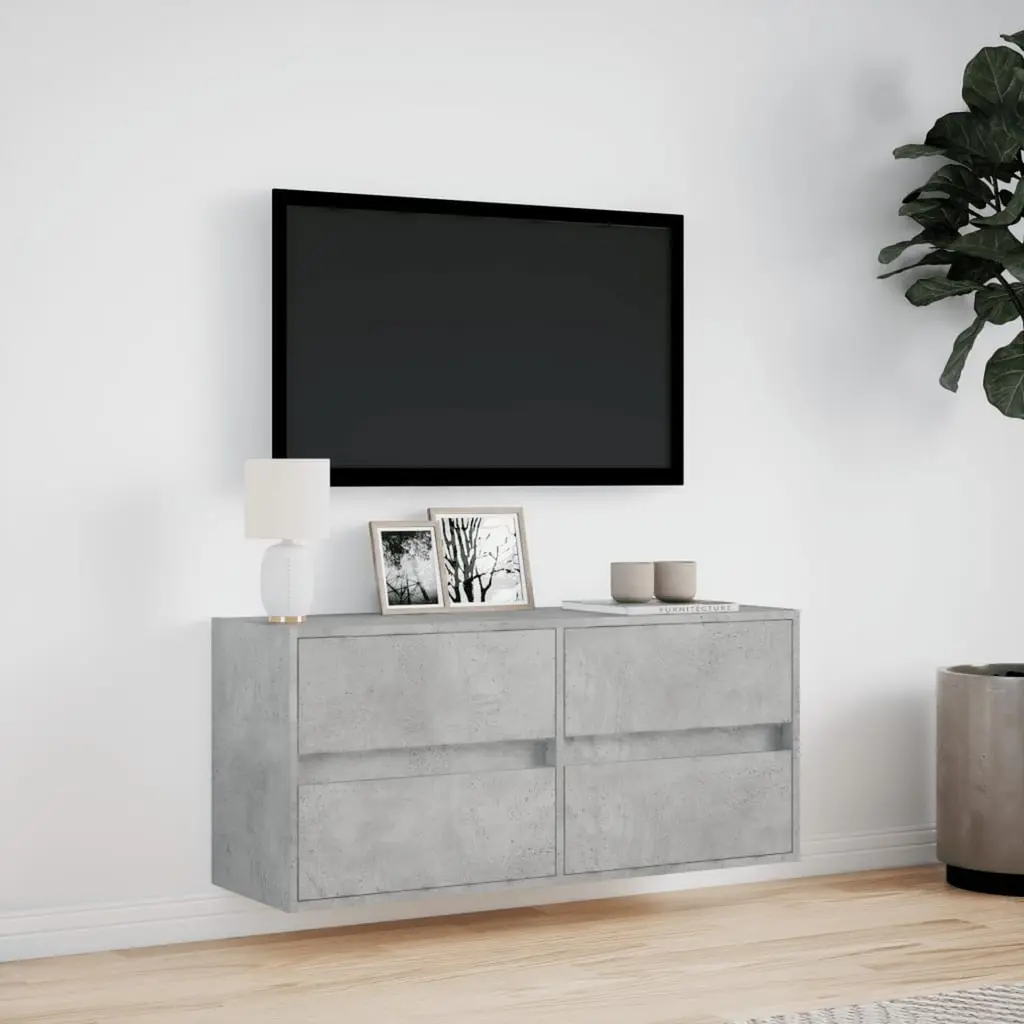 This modern floating TV cabinet is all about style and function, perfect for sprucing up your living room or office. It’s got a sleek concrete grey engineered wood look that fits right in with contemporary decor and gives you loads of storage for your media gear and bits. Ample Storage: The cabinet has four roomy drawers, making it easy to store your media devices, games, and accessories, keeping your living space neat and tidy for a better viewing experience.Built-In Lighting: RGB LED lights give off a soft, ambient glow, perfect for movie nights or just adding some style to your home; adjusting brightness and colors is a breeze.Contemporary Style: The classy matte concrete grey finish keeps a sleek look that won’t clash with your room decor, blending in beautifully with various styles.Wall-Mounted Design: This cabinet saves precious floor space and becomes a stylish focal point in your living area, providing a clean, streamlined vibe. Perfect for any modern home.Easy Installation: Assembly is simple, with everything you need included for a hassle-free setup; just follow the manual, and you’re good to go.