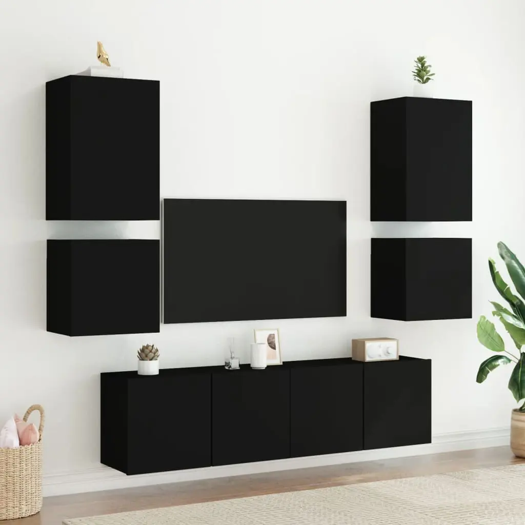 Vidaxl Tv Wall Cabinet Set Of 2 Black Engineered Wood Medium