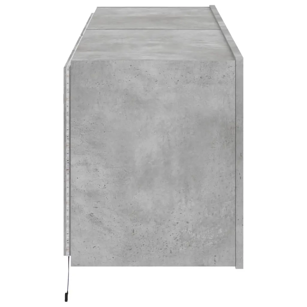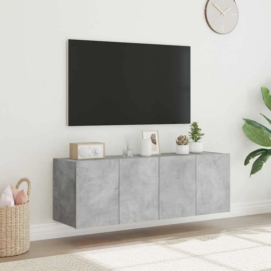 This modern TV wall cabinet boasts a contemporary vibe, effortlessly lifting any living area. Made from engineered wood, it combines practicality with style, perfect for sorting out your entertainment space. Contemporary Design: The sleek silhouette and modern finish of this cabinet enhance the decor of your living room, creating a stylish focal point.Ample Storage: Features four hinge doors offering substantial storage space, helping you keep your TV accessories, books, and media organized and out of sight.Dynamic Lighting: Enjoy a vibrant atmosphere with RGB LED strip lights that change colors, setting the perfect mood for movie nights.Space-Saving Mounting: The wall-mounted design saves floor space and looks tidy, making it perfect for smaller rooms.Easy to Maintain: The smooth texture of the engineered wood makes cleaning a breeze, keeping your cabinet looking sharp.