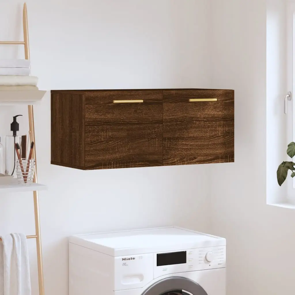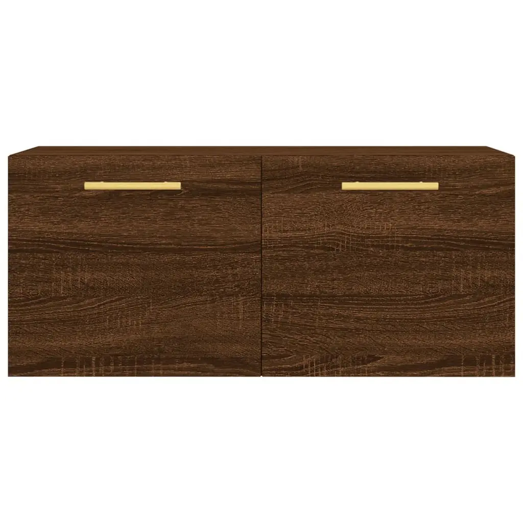 This wall cabinet is a perfect mix of modern style and practical function, making it a lovely addition to any living space. Built from tough engineered wood with a rich brown oak finish, it's all about giving you plenty of storage without wasting wall space. Ideal for your living room, bedroom, or office. Ample Storage Capacity: Comes with plenty of shelves for stashing books, decor, and personal stuff, keeping your space tidy.Modern Design: The sleek lines and matte finish fit right into any modern home.Practical Wall-Mounted Solution: Hanging this on the wall saves precious floor space and lets you show off your favorite items.Durable and Reliable Material: Made from high-quality engineered wood, it's built to last and keeps looking good over time.Easy Assembly Required: Comes with clear instructions and all the pieces you need, making it easy to put together and set up in your home.
