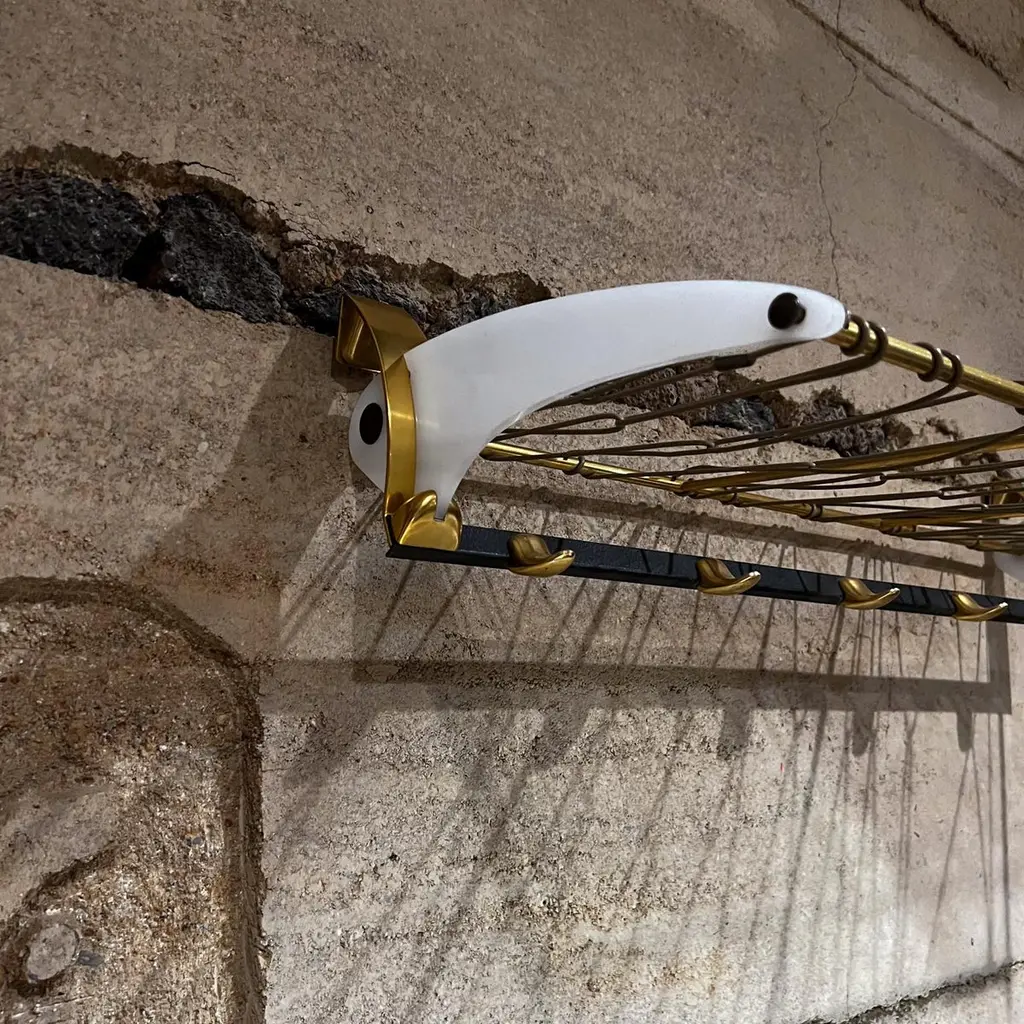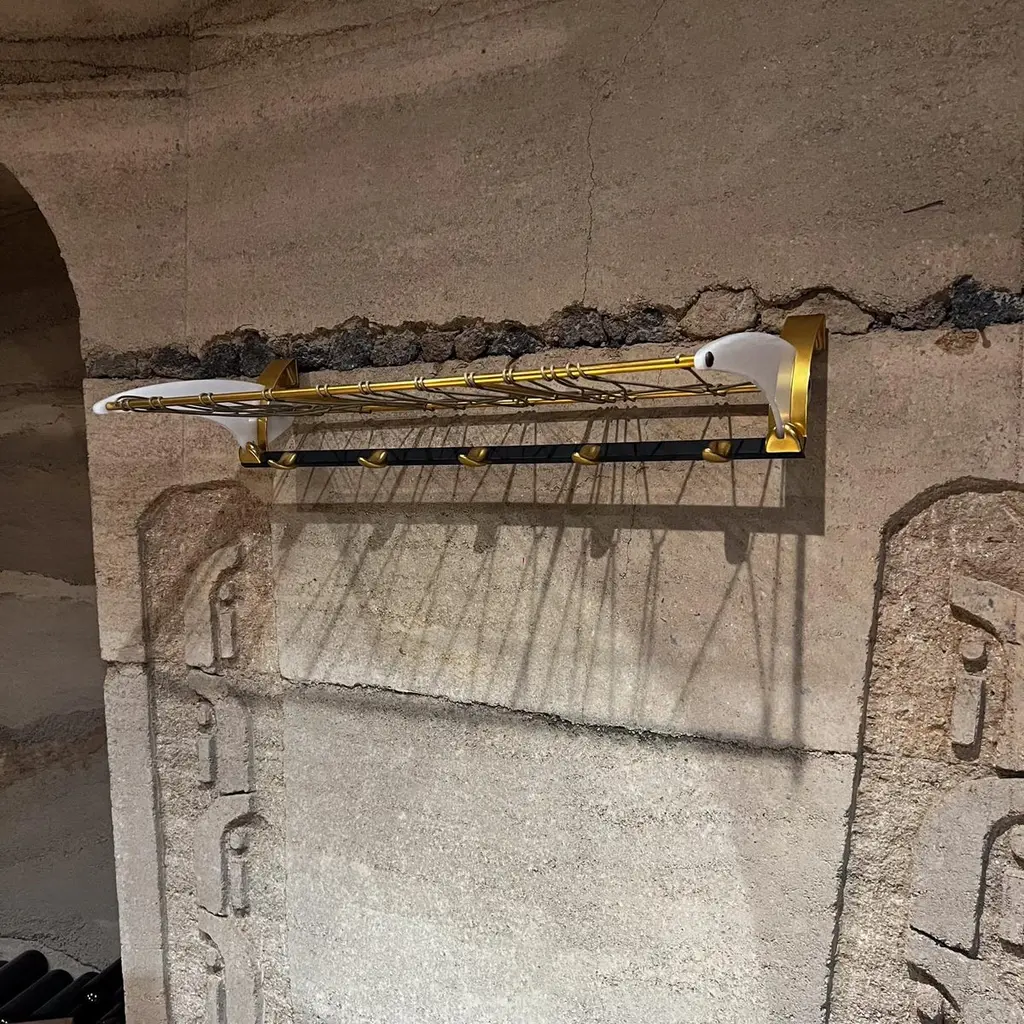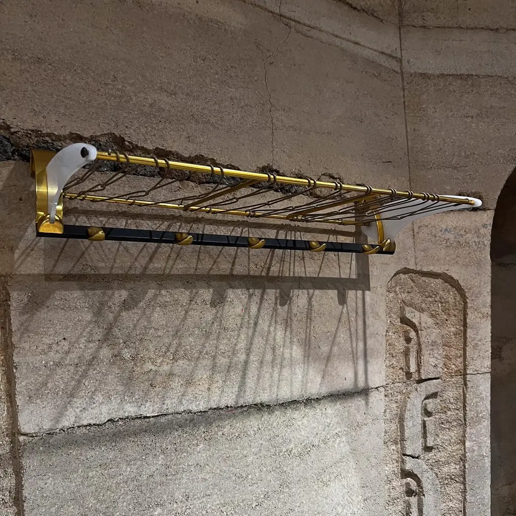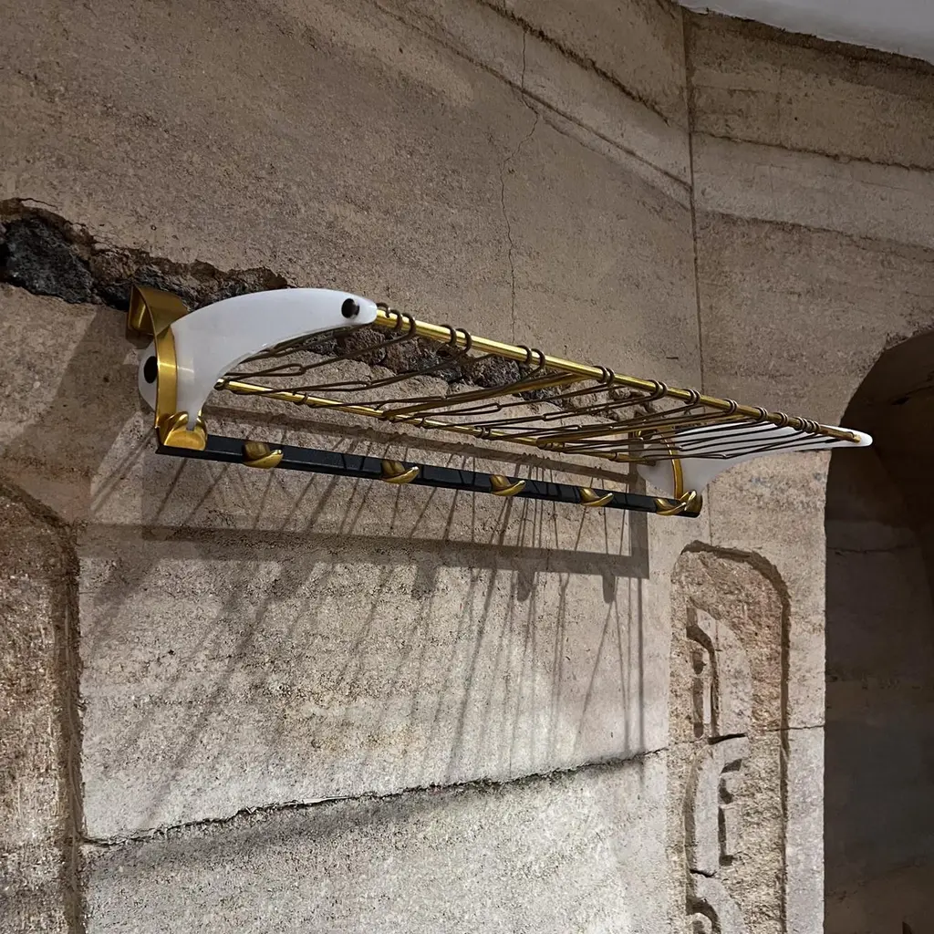 1960s French Brass Coat Hat Rack Shelf Style Of Jacques Adnet