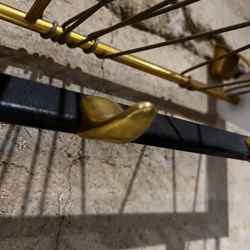 For your consideration, a French Modern 1960s Brass Hat and Coat Rack ShelfIn the style of Jacques Adnet. Unmarked.Powder coated Black Steel, Plexiglass & Aluminum anodized Brass finish.Dimensions: 13.25 D x 31.5 W x 6.75 inches tall.Refer to all images and description.Delivery within 200 miles from San Diego CA is available for an additional fee. (LA, OC, PS)Please visit take a look at our listings, we have an amazing curated collection of hard to find items.