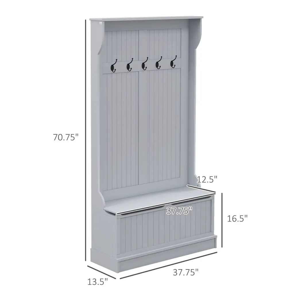 3 In 1 Entryway Hall Tree With Storage Bench,coat Rack With Four Hooks And Shoe Storage - Grey