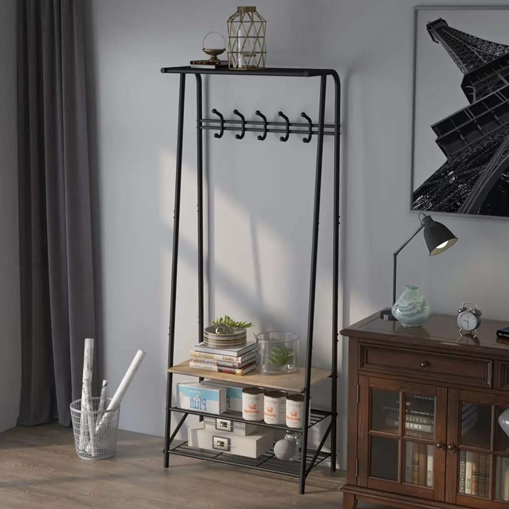 4 In 1 Coat Rack And Shoe Bench, 4-tier Entrance Hall Tree With 5 Hooks, Multi-function Hallway Storage Rack, Bathroom, Hallway