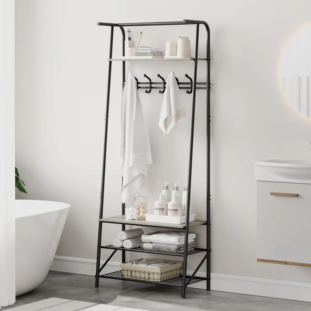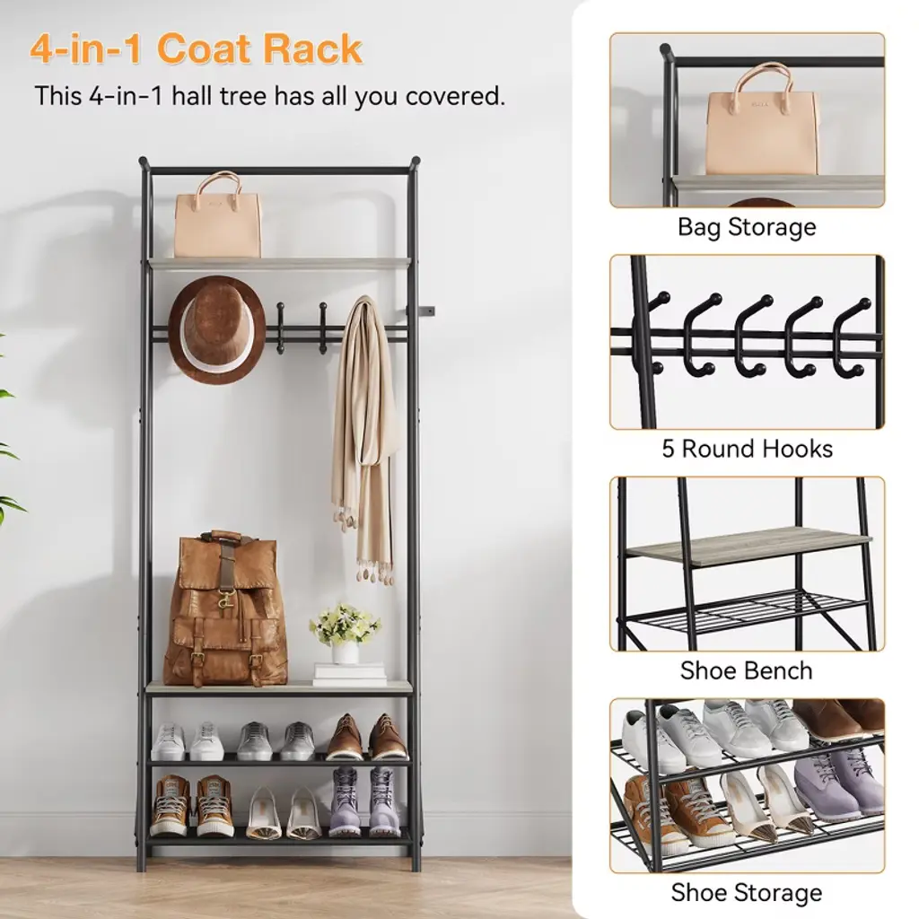 4 In 1 Coat Rack And Shoe Bench, 4-tier Entrance Hall Tree With 5 Hooks, Multi-function Hallway Storage Rack, Bathroom, Hallway