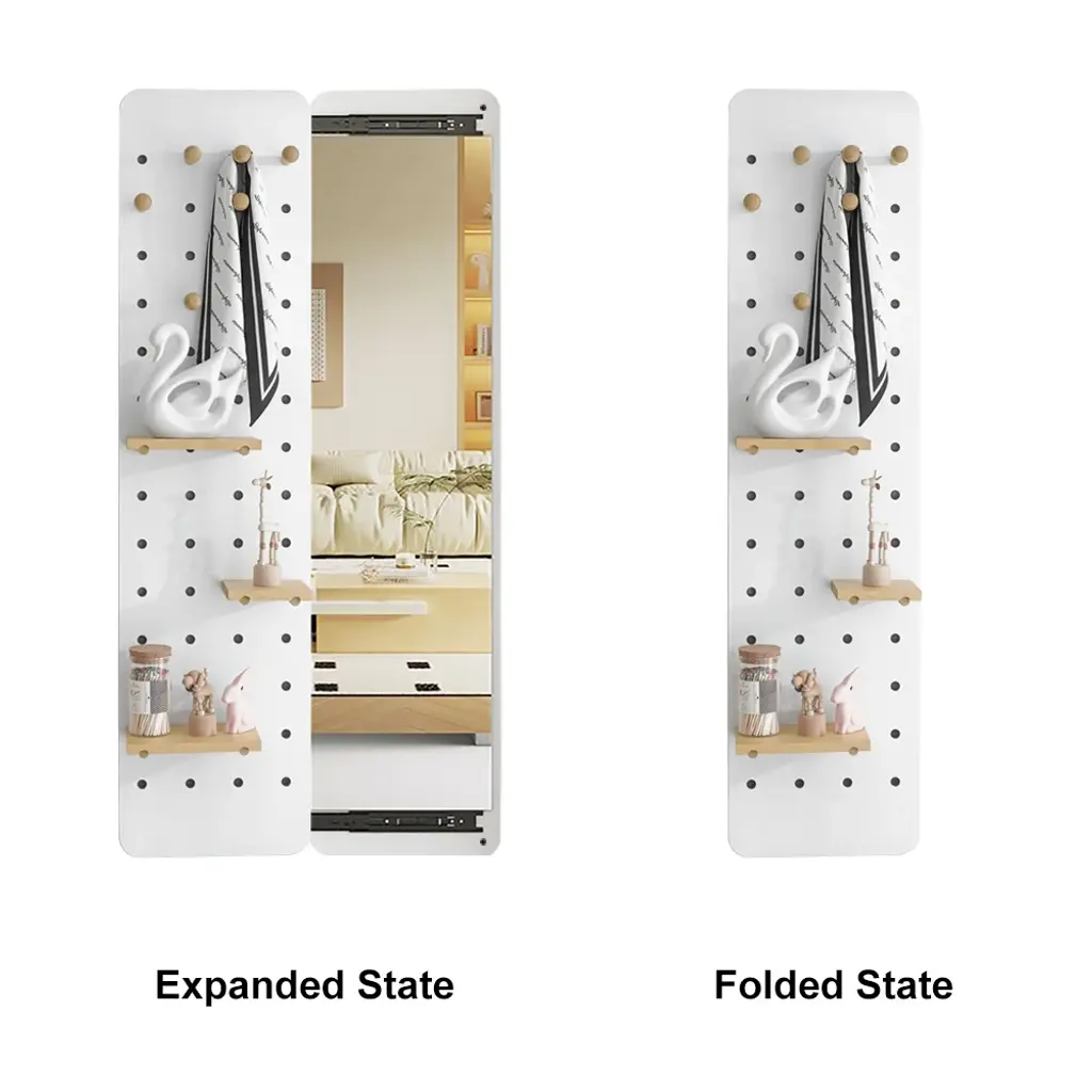 [Unique Design] Unique pegboard and hidden sliding dressing mirror design. It also comes with 3 storage racks for easy placement of various items, combining beauty and practicality. [High-quality Material] Made of high-quality MDF and high-definition mirror,healthy and environmentally friendly, focusing on every detail. [Multipurpose] It can not only be used as a wall mirror to hang in the living room, bedroom, dining room and porch, but also can be used as a collection and gift to family and friends, it will bring unexpected surprises.