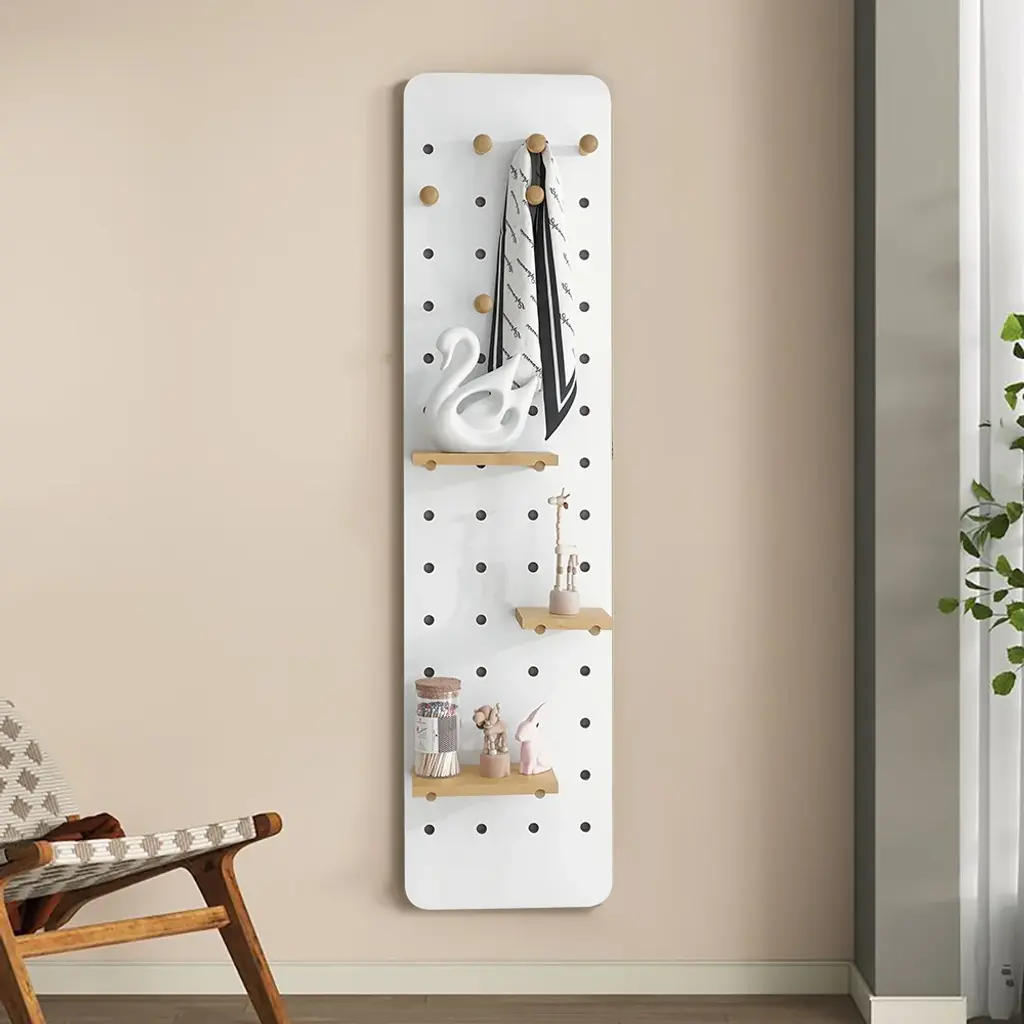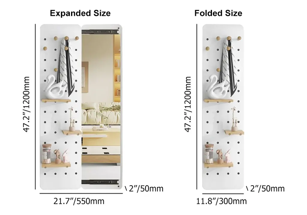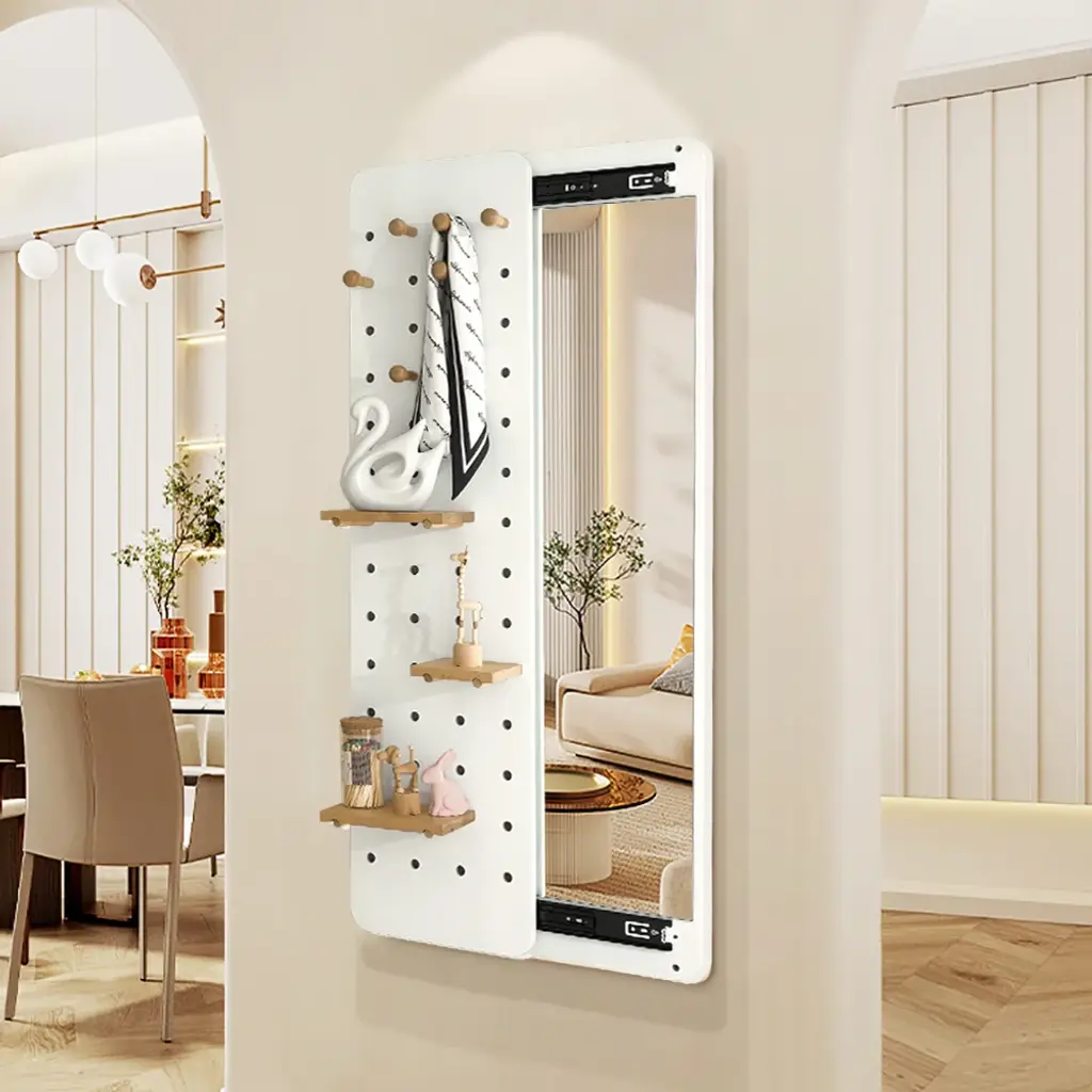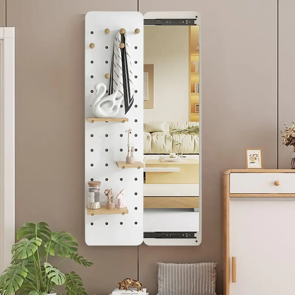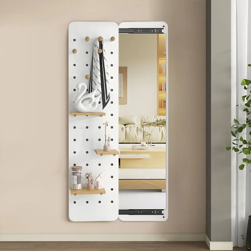 47.2" Pegboard Hidden Sliding Dressing Full Length Floating Wall Mirror Coat Rack Hooks