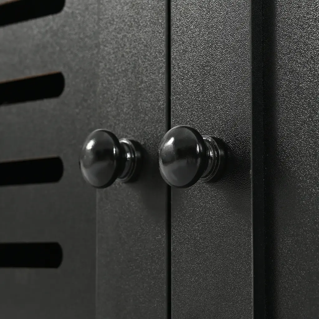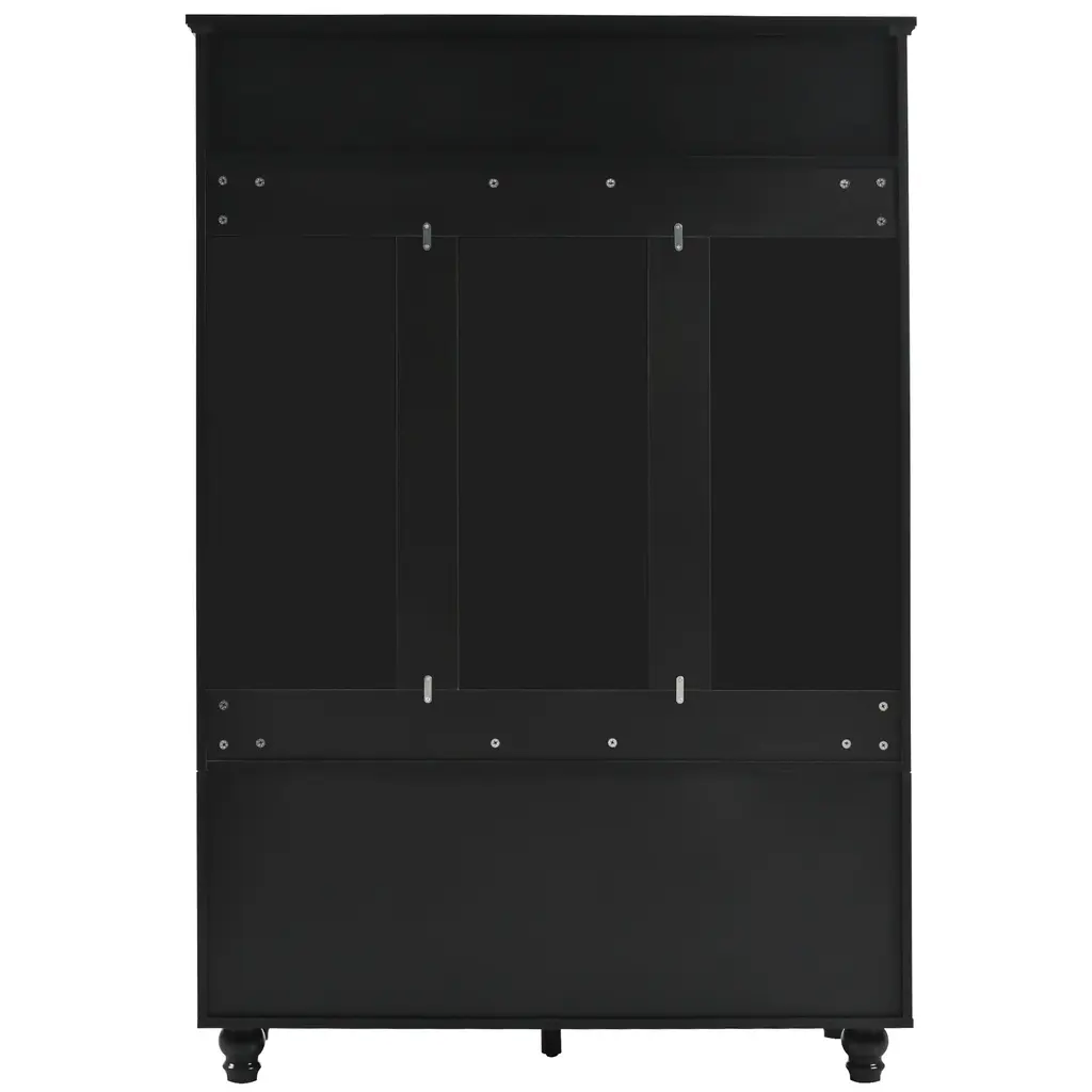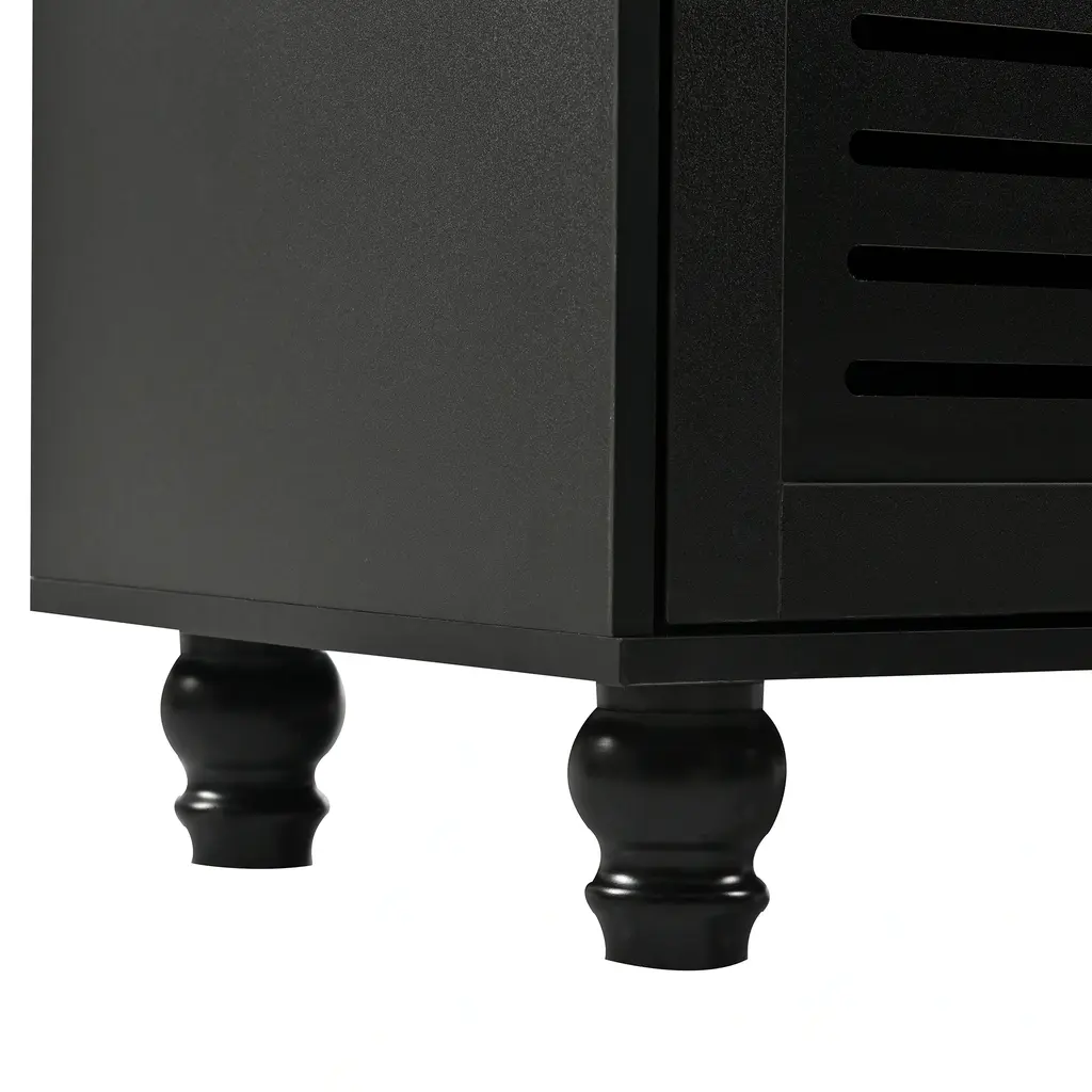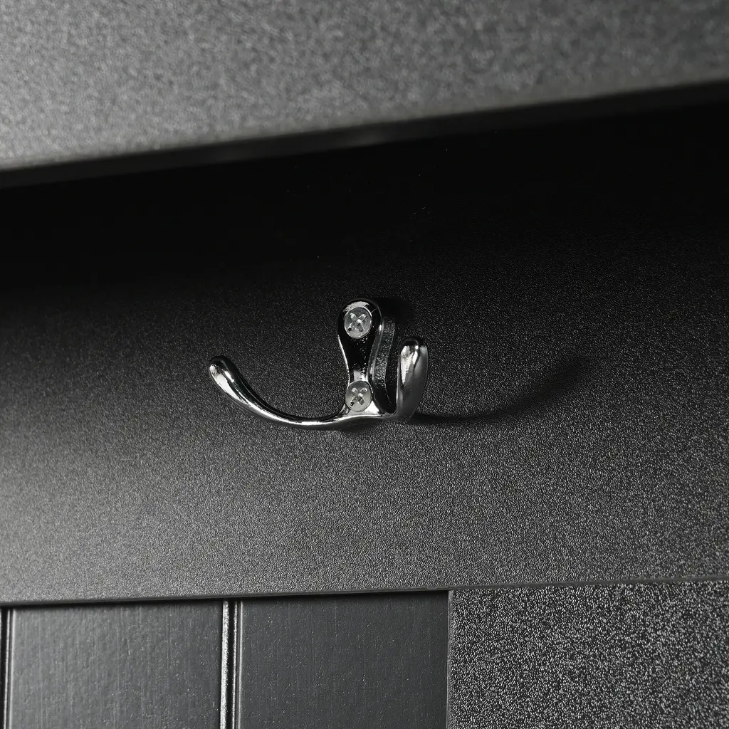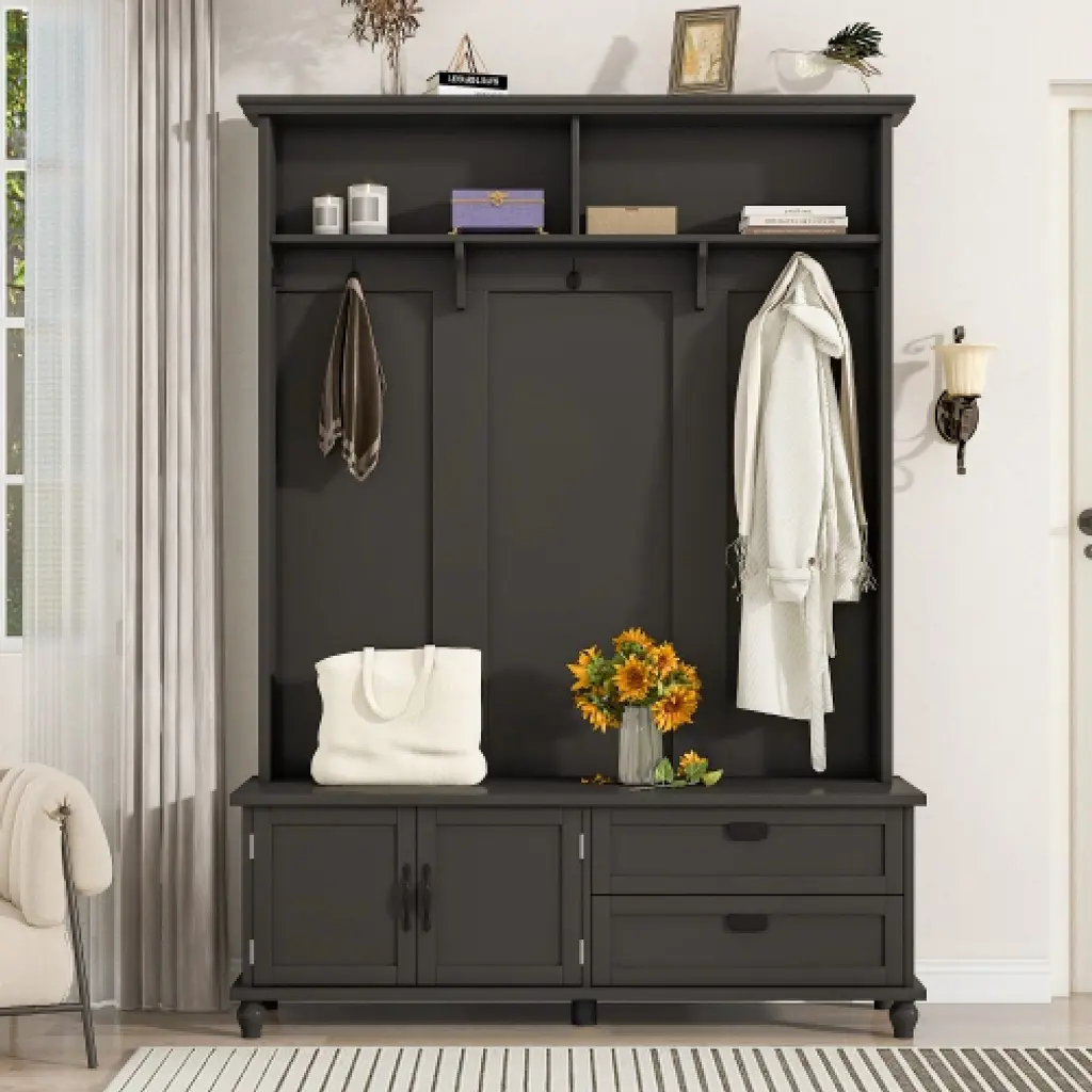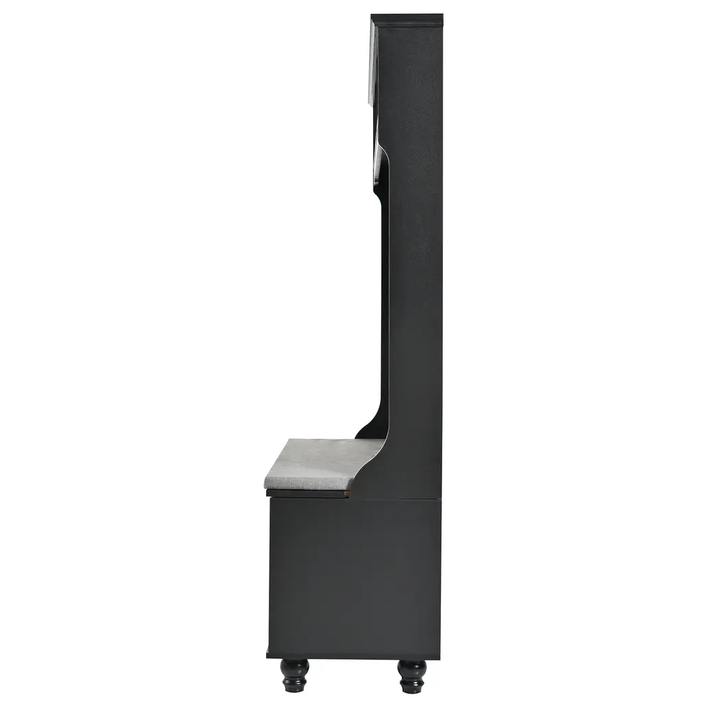 5 In 1 Entryway Bench With Shutter Shaped Doors,coat Rack,cushion And 4 Sturdy Hooks - Black