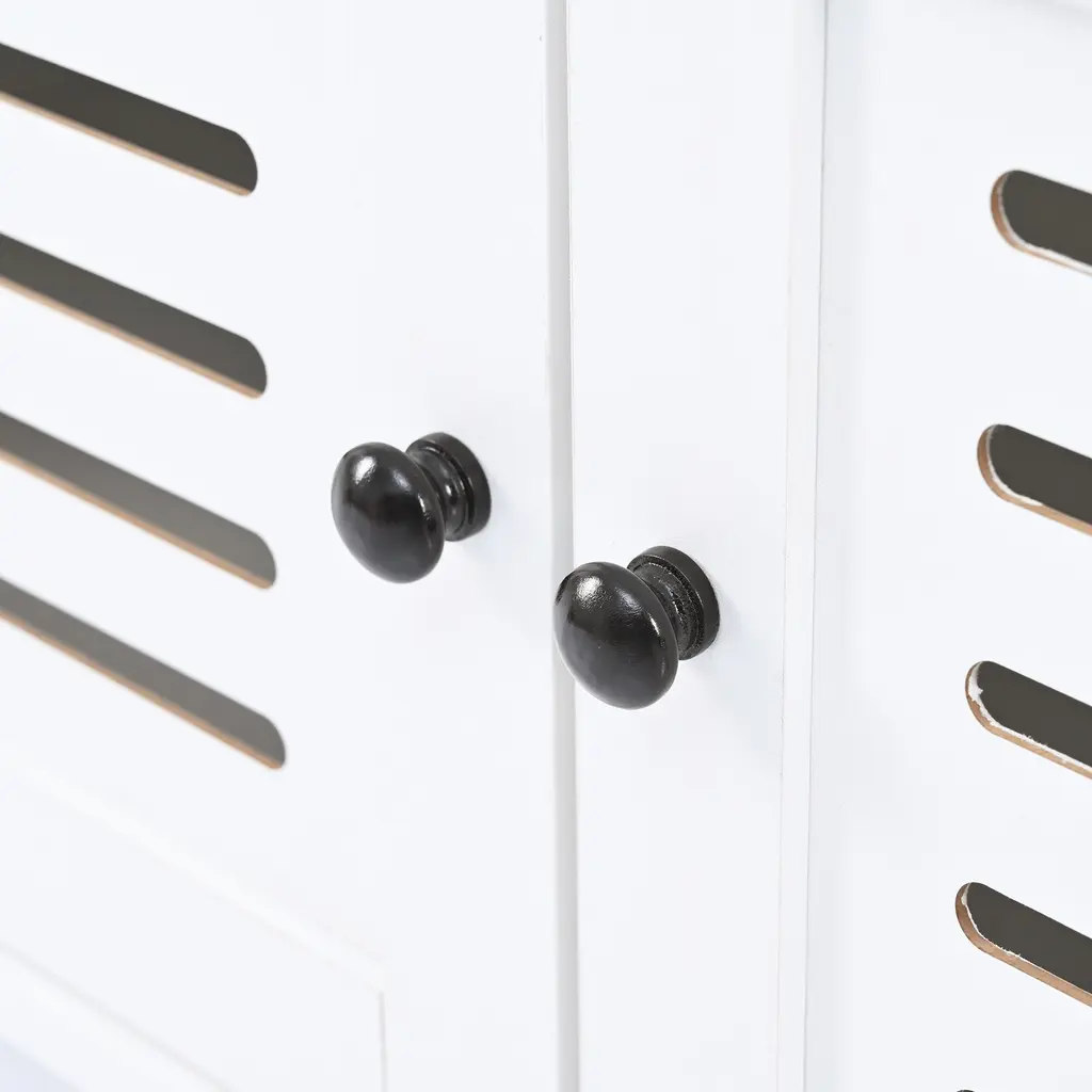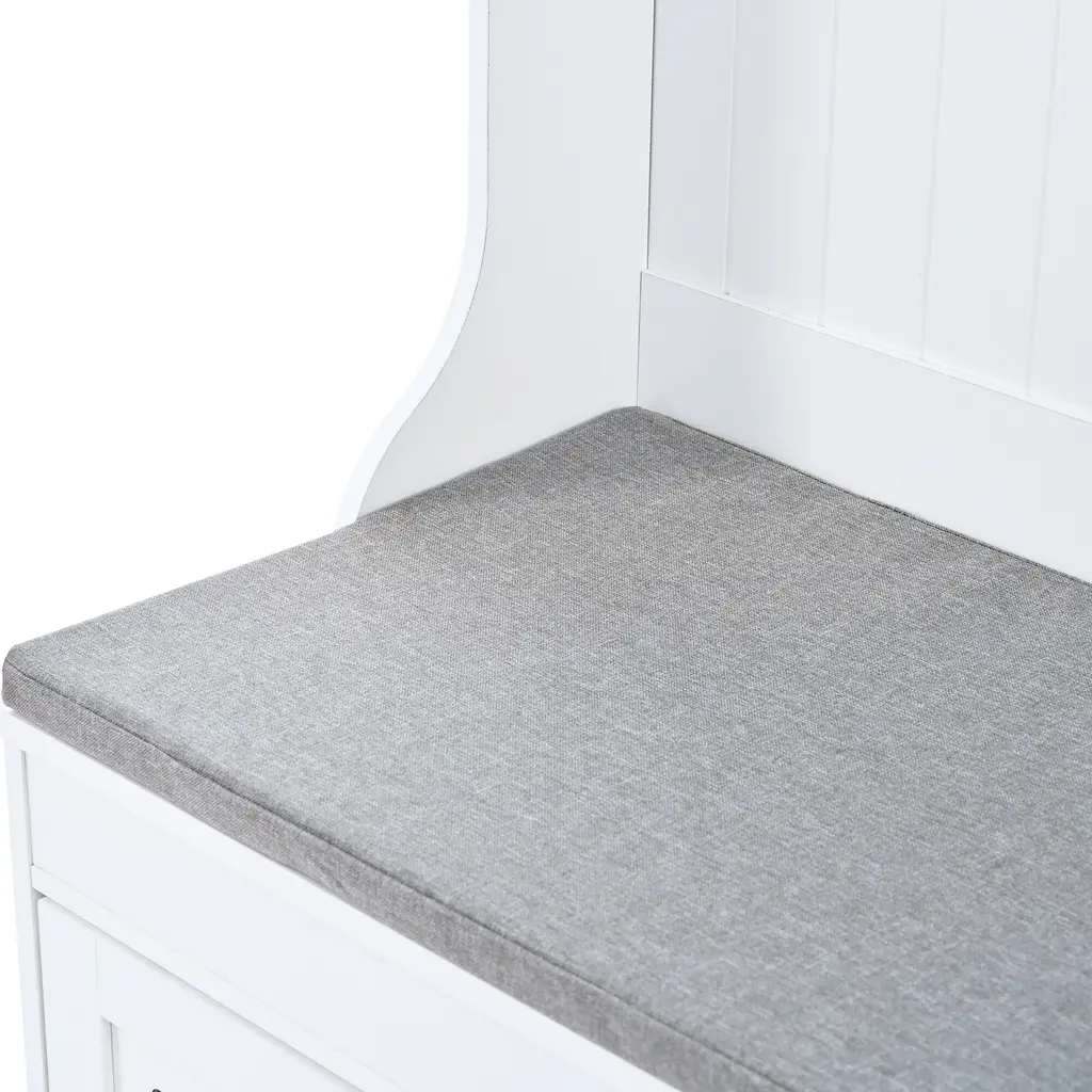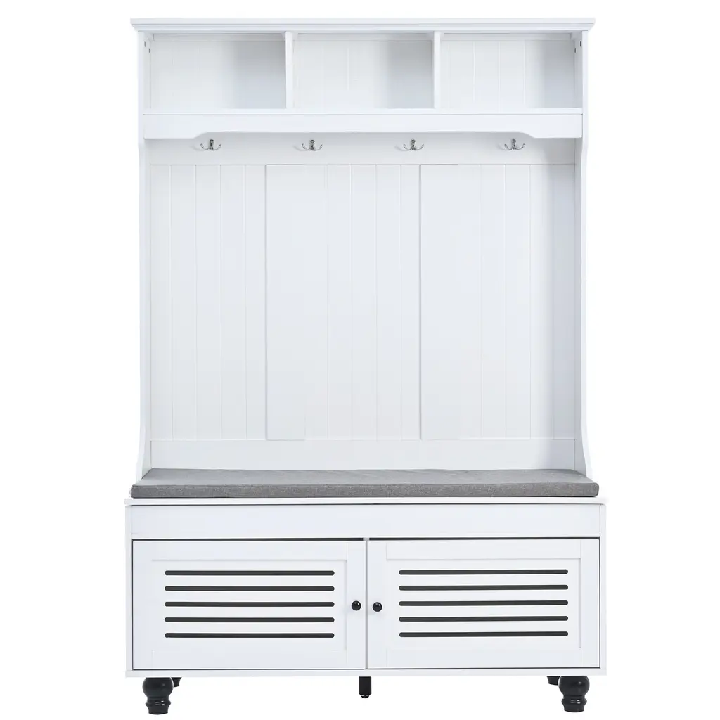 5 In 1 Entryway Bench With Shutter Shaped Doors,coat Rack,cushion And 4 Sturdy Hooks - White
