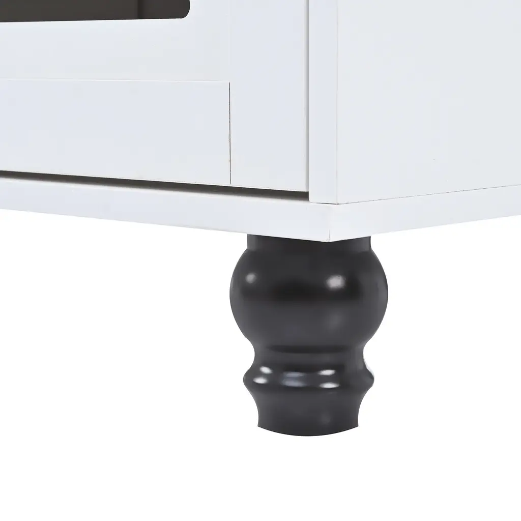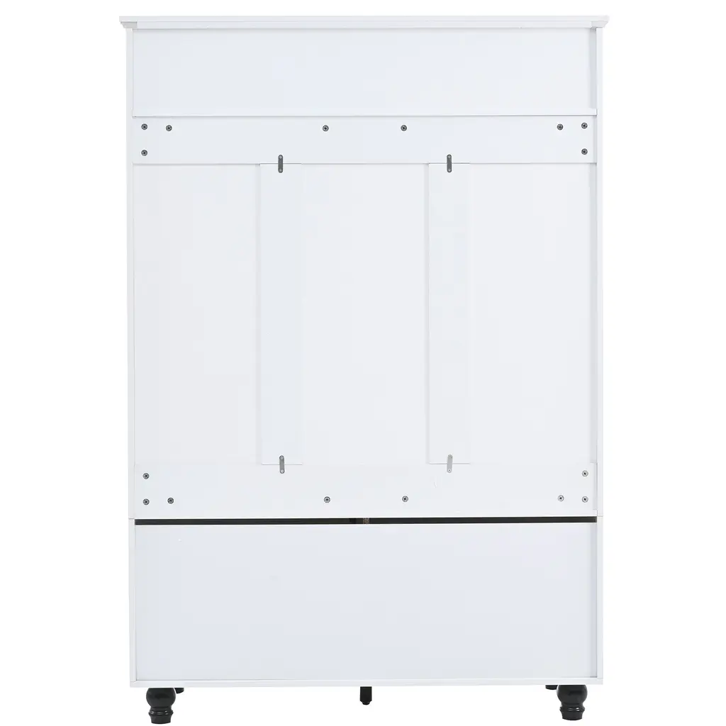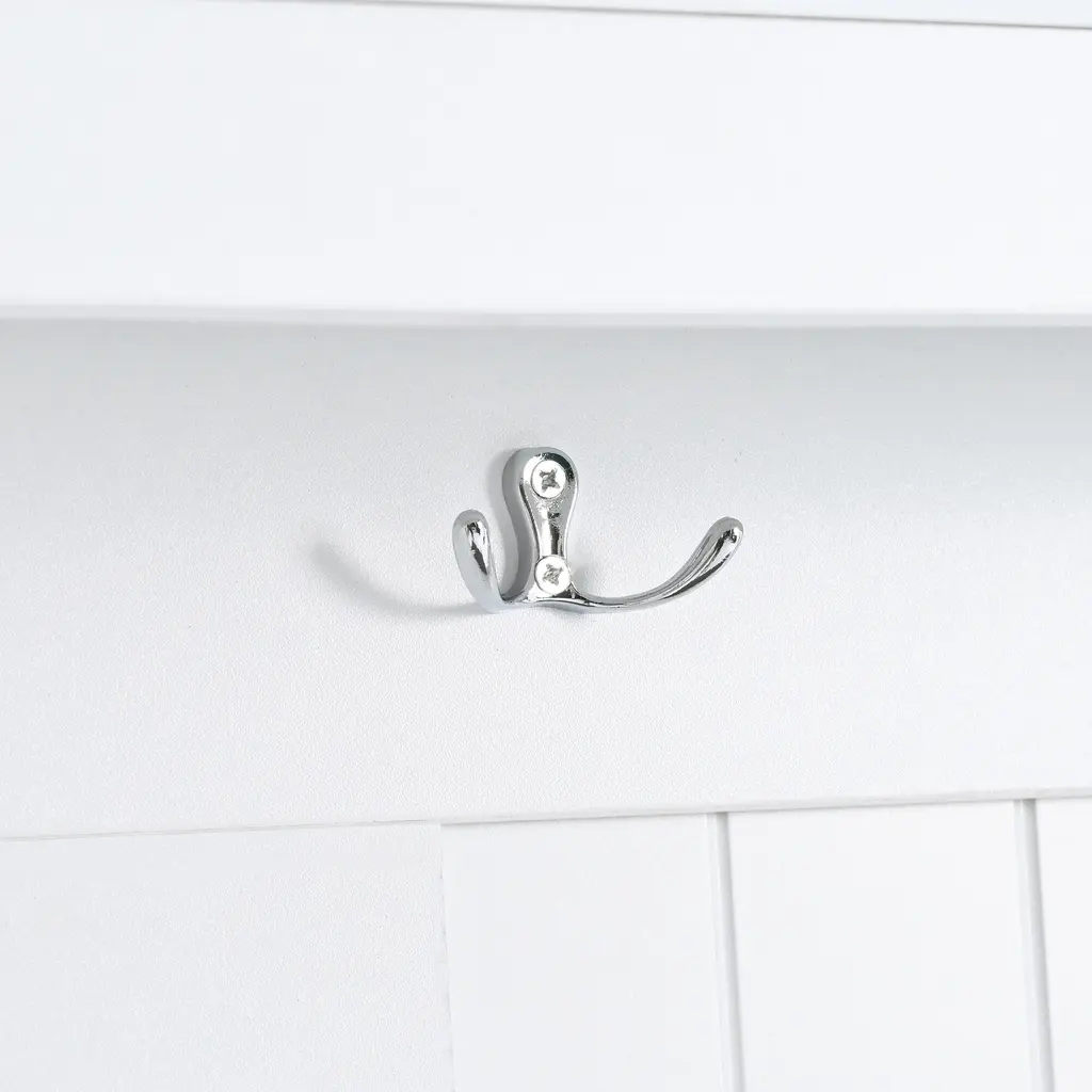 5 In 1 Entryway Bench With Shutter Shaped Doors,coat Rack,cushion And 4 Sturdy Hooks - White