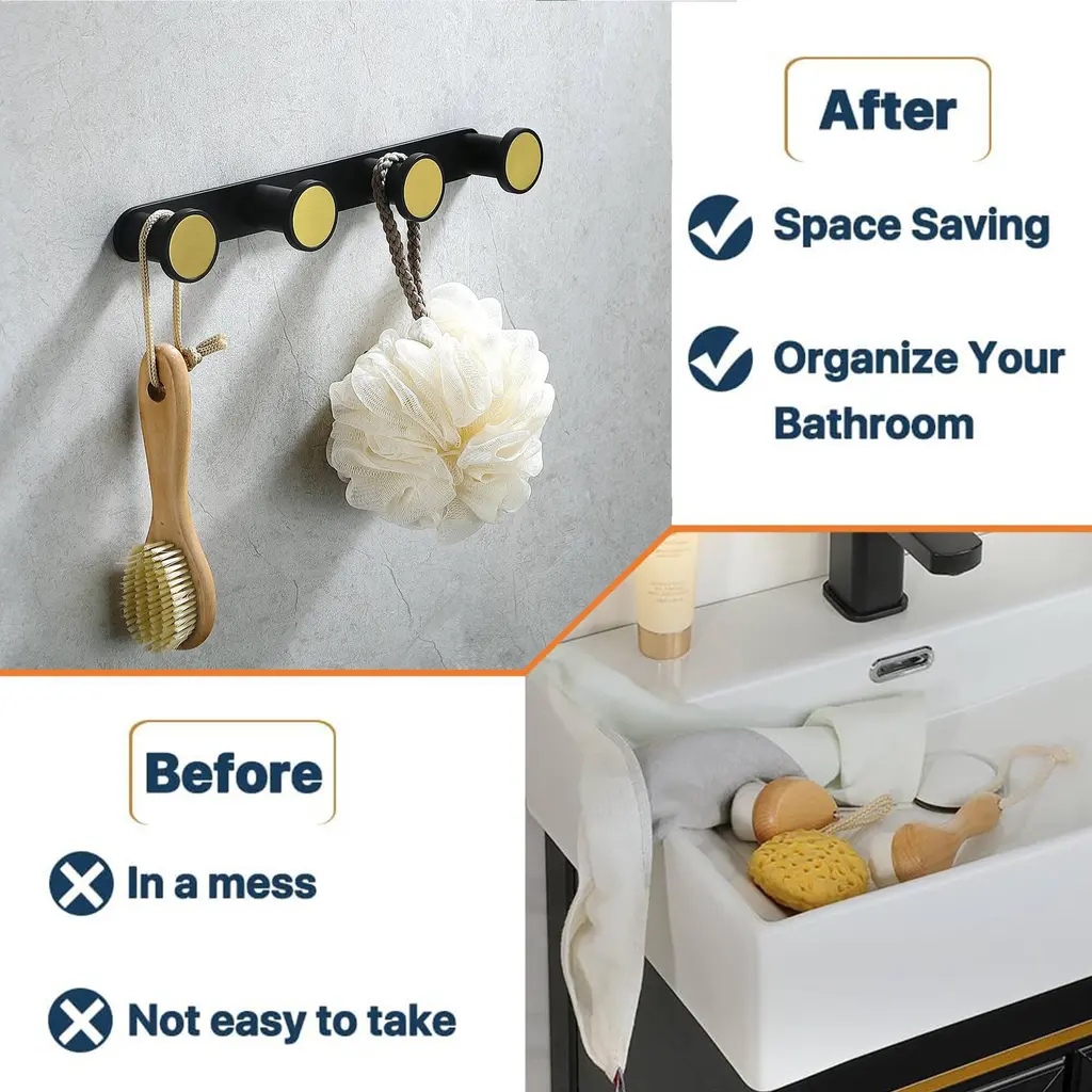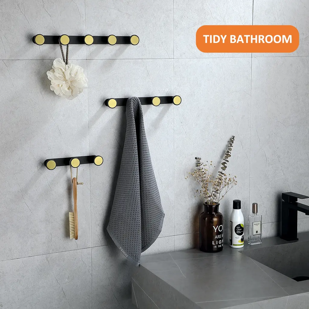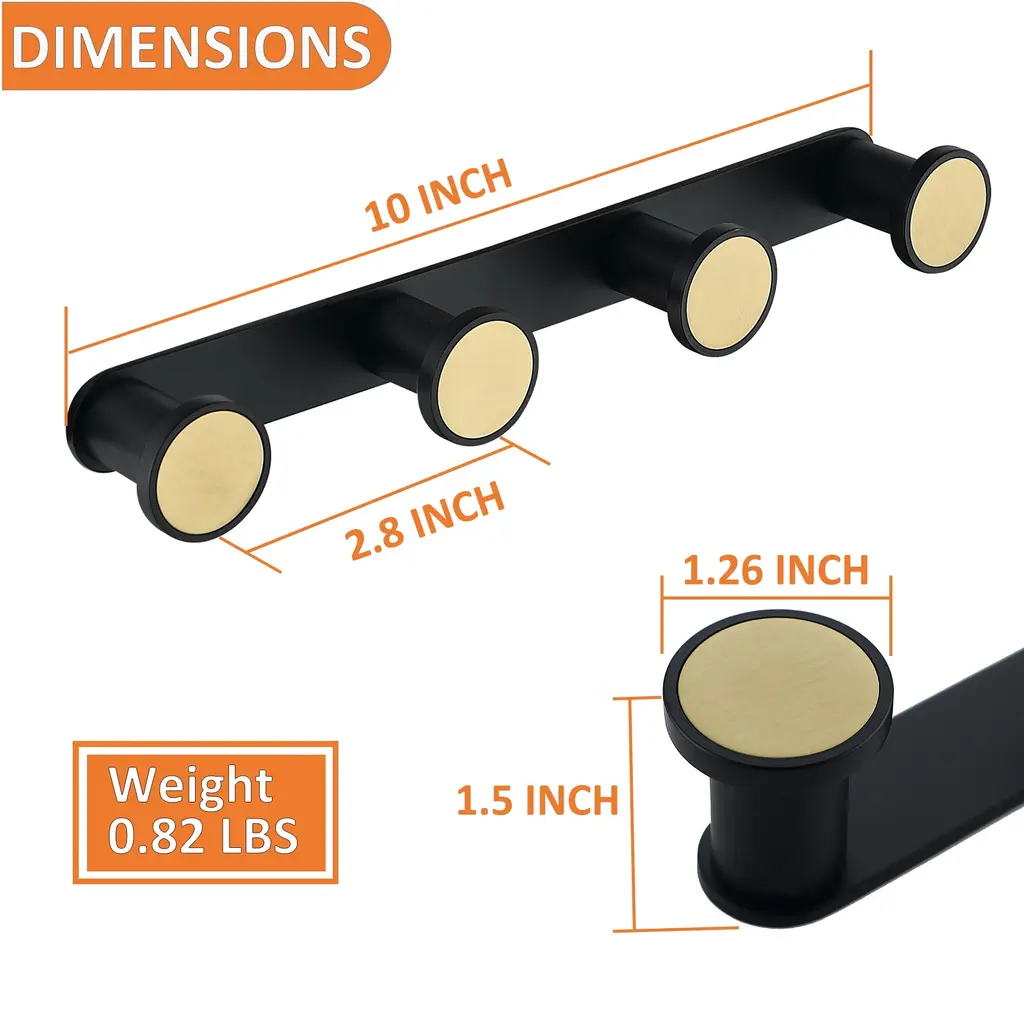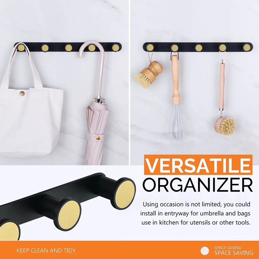 GLORY Series stylish coat rack wall mounted provides a convenient and space saving solution for easy organization. Black and Gold Metal Coat Rack has a morden, rustic and minimal style, adding an elegant accent to your home decor. Creative Design - This unique design makes this wall mounted coat rack a perfect decorative item in any location in your home. Perfect for hanging your coats, jackets, towel, scarf, baseball caps, backpack, keys and so on.