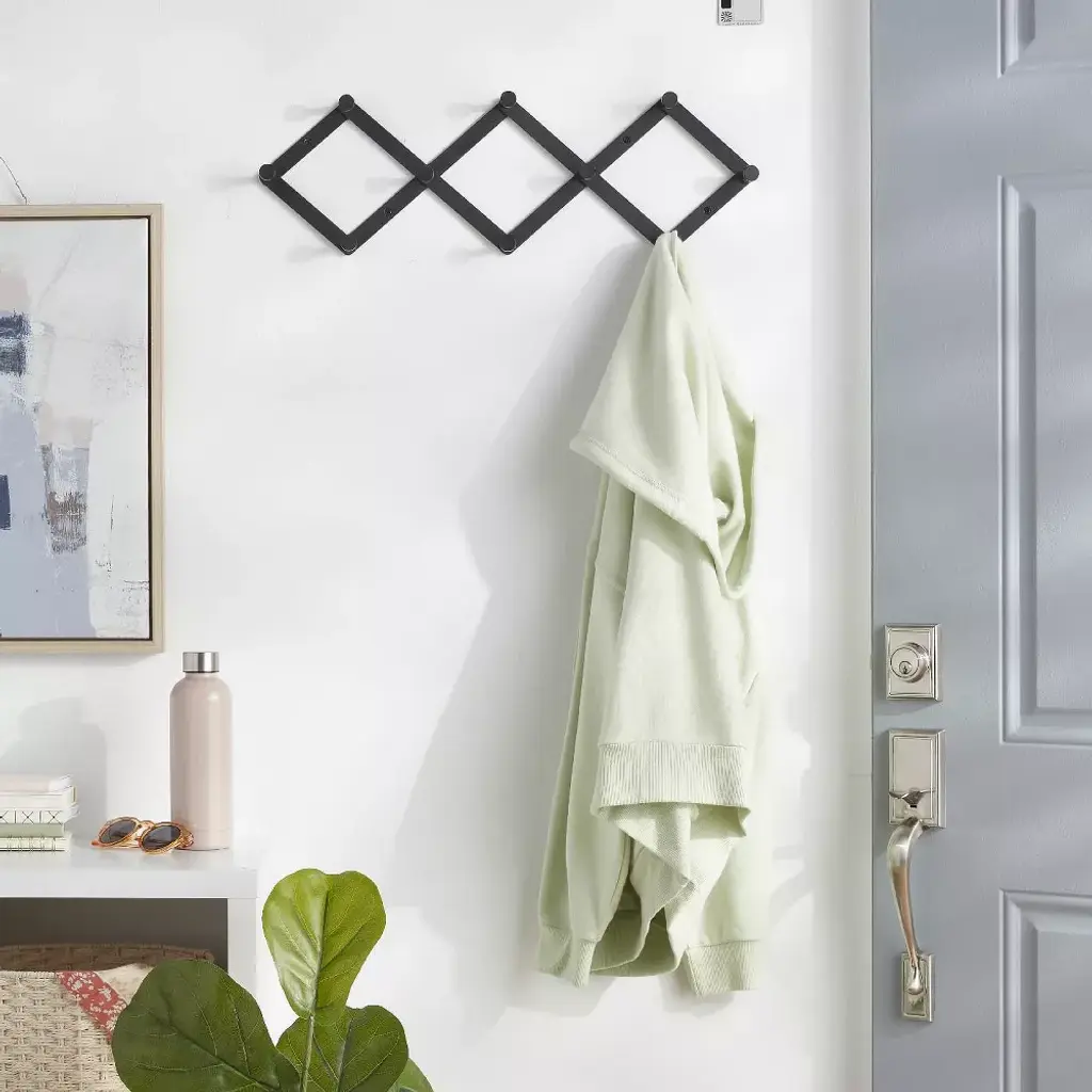 Organize your daily items in style with this Accordion 10-Hook Rail from Brightroom™. Made from metal, this accordion-style wall rack features a matte black powder-coated finish that coordinates with any decor. The versatile rack has 10 hooks for hanging hats, coats, scarves, bags, belts or other items. Just wall mount it in your laundry room, bathroom, entryway or kitchen to create extra hanging space.Brightroom™: See your space in a new light.