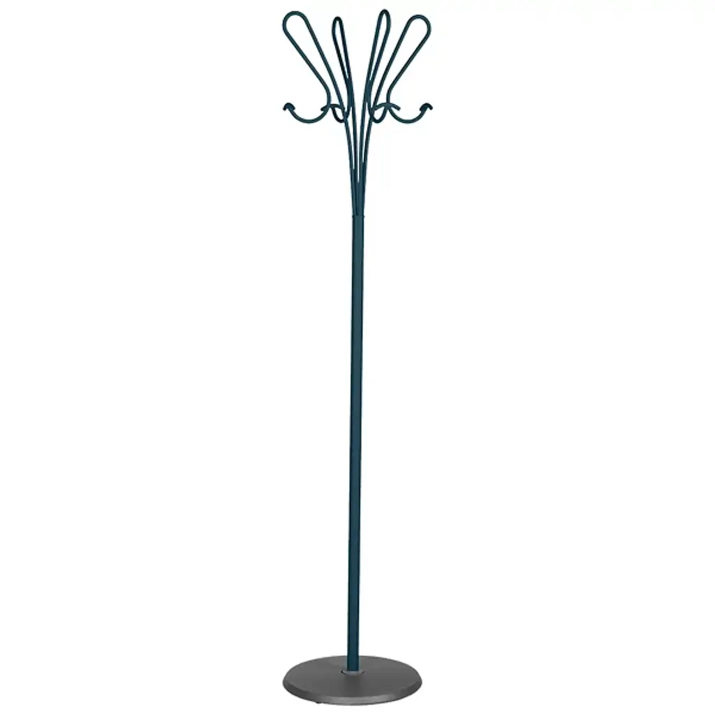 Neo-romantic design made for you to love. The Accroche Coeurs Coat Stand by Fermob is a reissue of the classic 1993 design by Pascal Mourgue, which was then created as an elegant, all-metal take on the bent wood “perroquet” coat stand. Starting with a heavy cast iron base, a tubular aluminum stem culminates in 4 steel wire curves. Each curve offers 2 points to hang coats, hats, towels and more: at the top of the main curve and at its end. Finished off with a durable polyester powder coat, this stand can be used indoors or out.