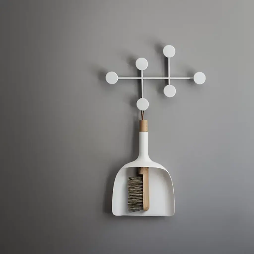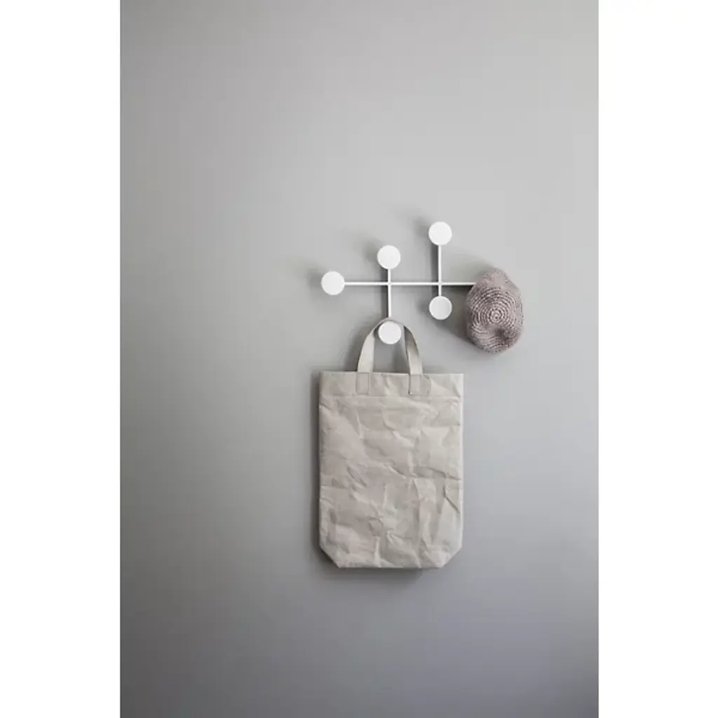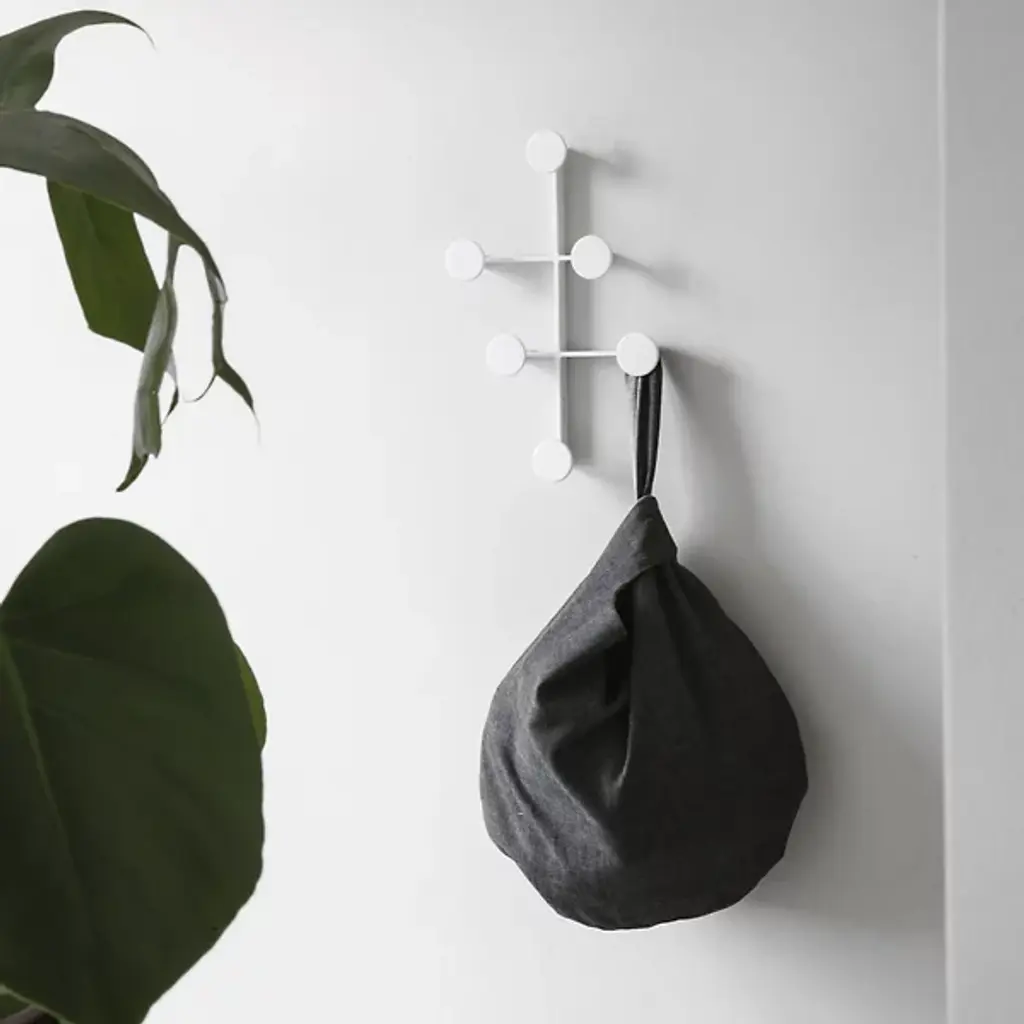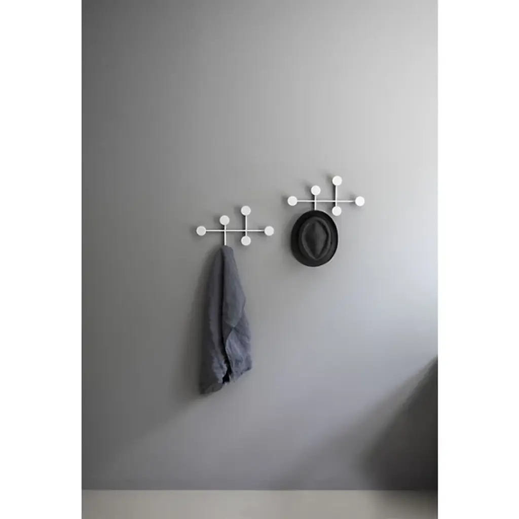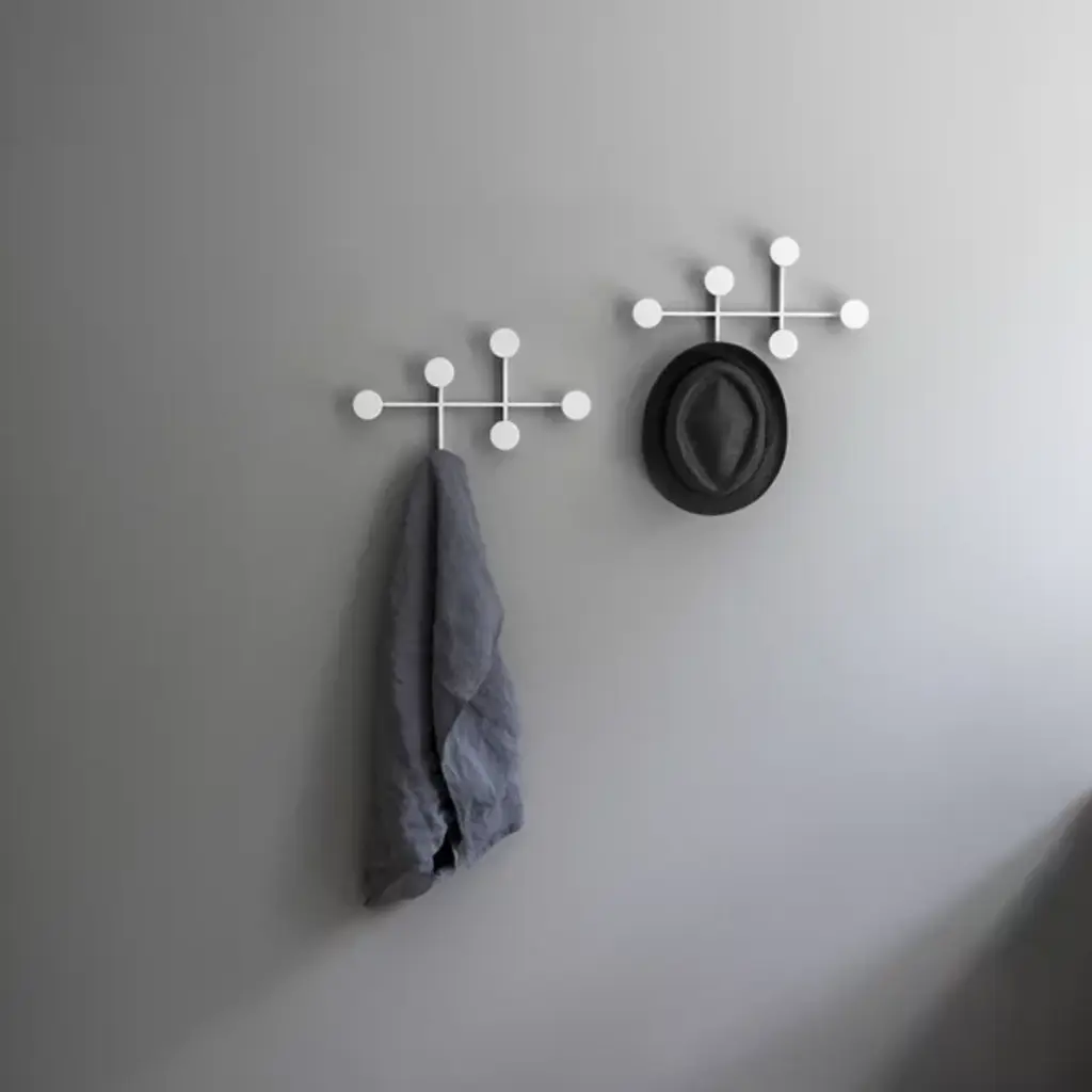 The Afteroom Coat Hanger by Audo Copenhagen, formerly known as Menu, is a simply sculptural coat rack designed by Afteroom. It takes inspiration from the Bauhaus movement and is made out of powder coated and/or brass-plated steel, with 6 dot-shaped hangers for coats, bags, hats, and more. To maintain the clean lines of the piece, the screws for mounting the rack to the wall are hidden inside its frame. Its zinc alloy quality adds durability.
