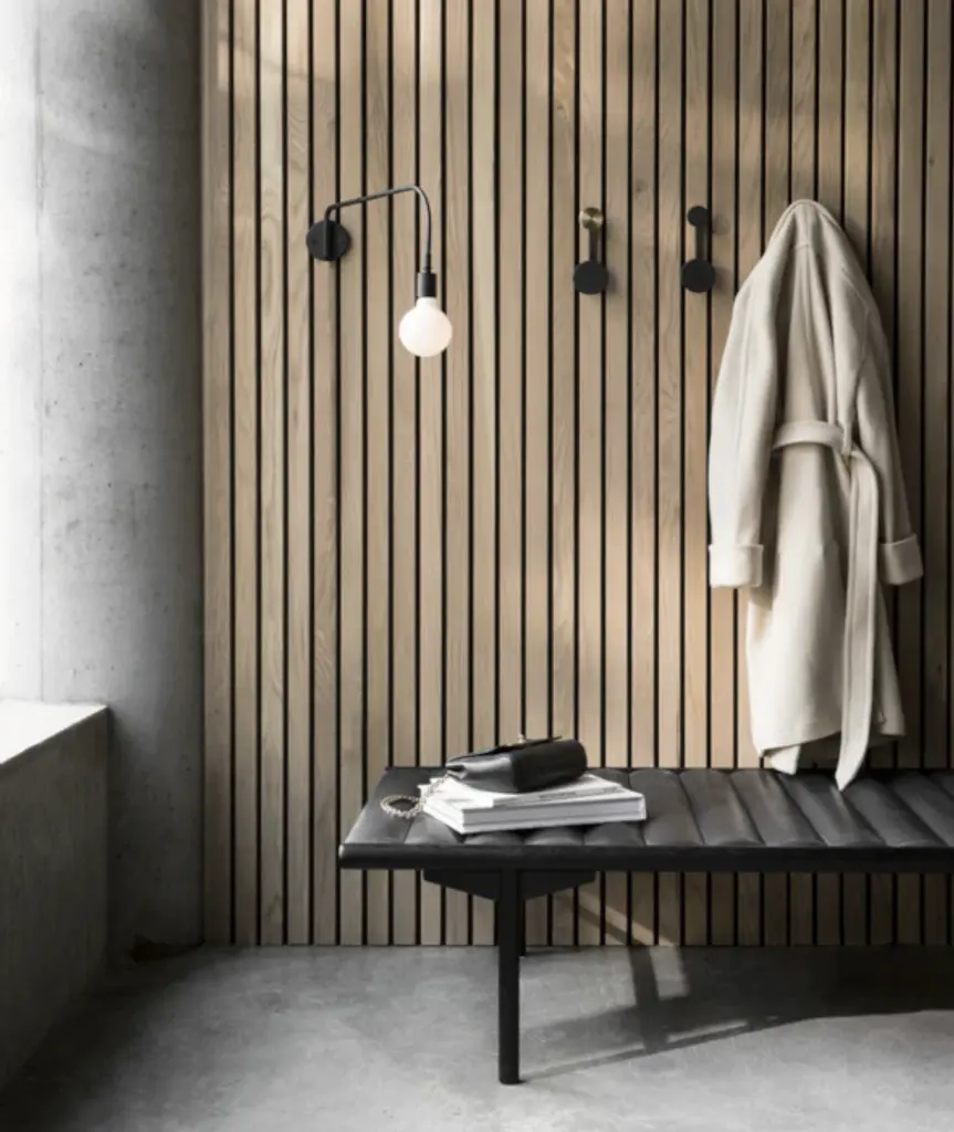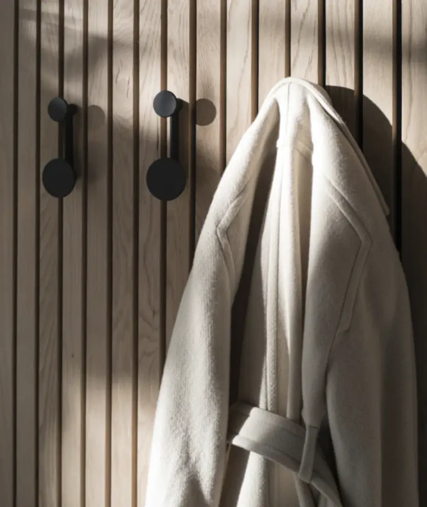 The Afteroom Coat Hanger draws its references from Bauhaus and Modernism. A hanging system for coats, clothes or accessories that can be easily secured to any wall (with screws being hidden to further compliment the minimalist feel), a less is more aesthetic defines the Afteroom Coat Hanger.