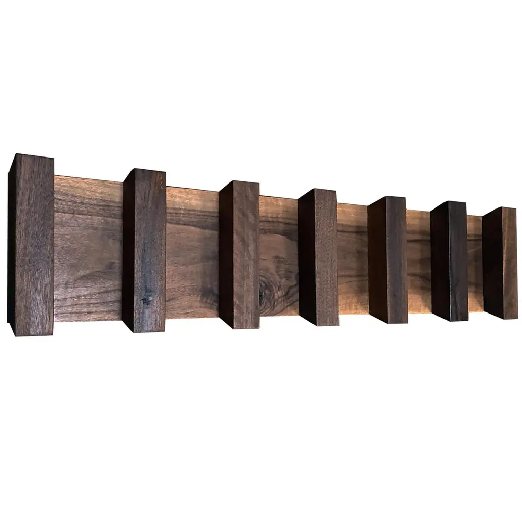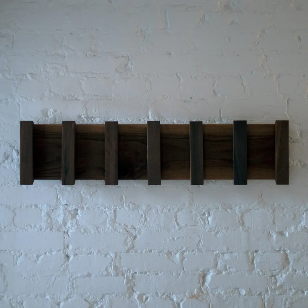 The AMP coat rack is crafted from solid walnut wood. The finish is a natural oil and beeswax blend.