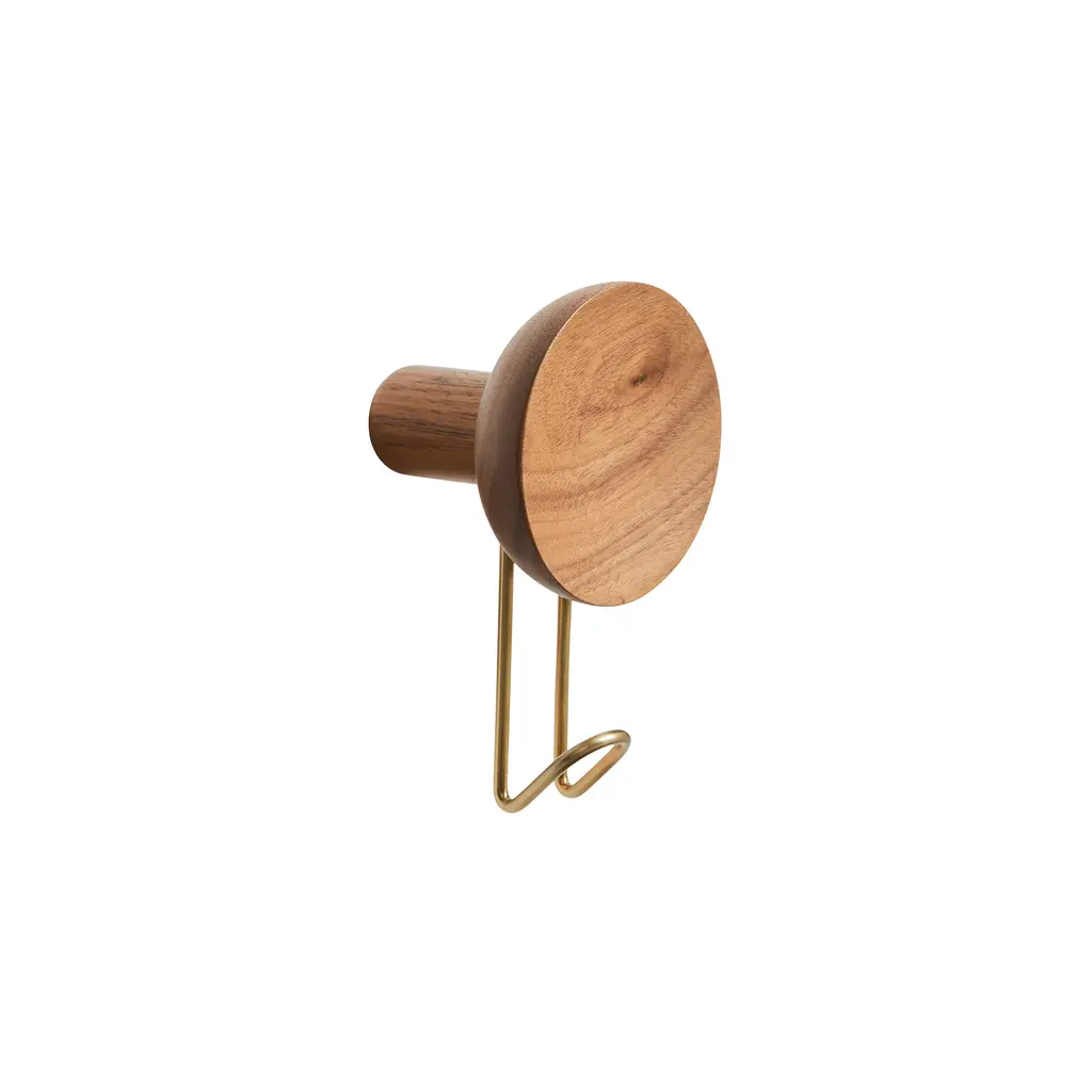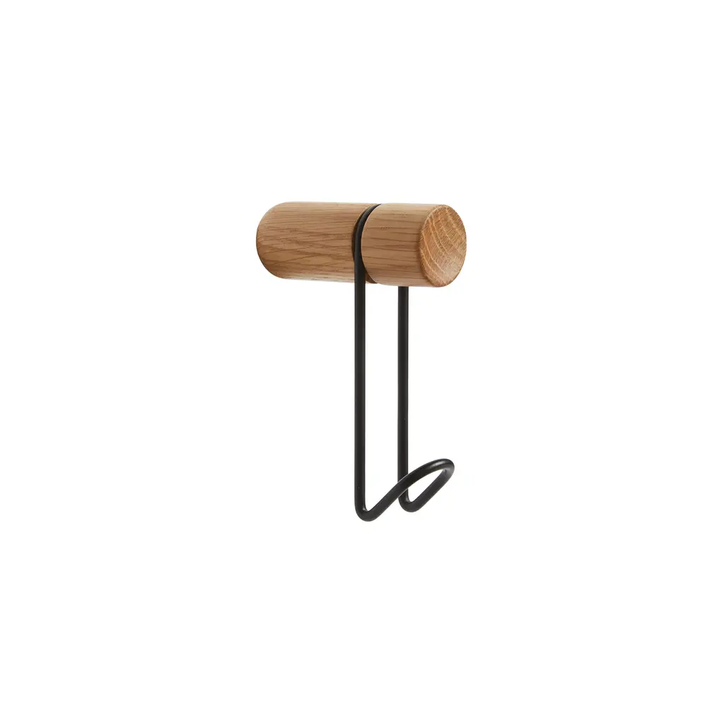 With a concave wooden hanger that lends a sculptural note while adding warmth and balance to the sturdy metal hook, Around combines striking looks and easy utility. Offered in 2 sizes and matte walnut and oak finishes with either a satin brass or black hook, 201 Design Studio’s wall pegs can easily be combined in a harmonious composition.