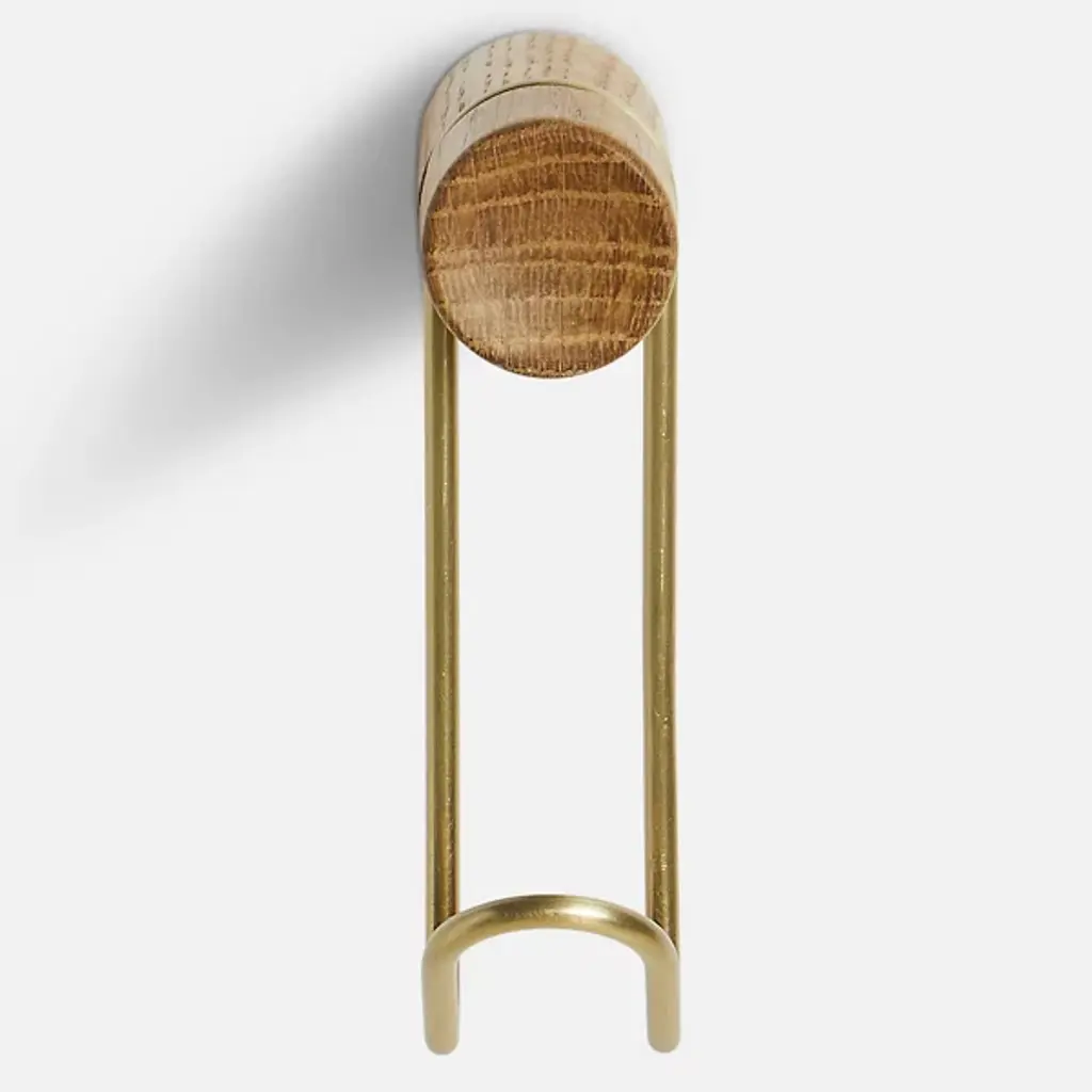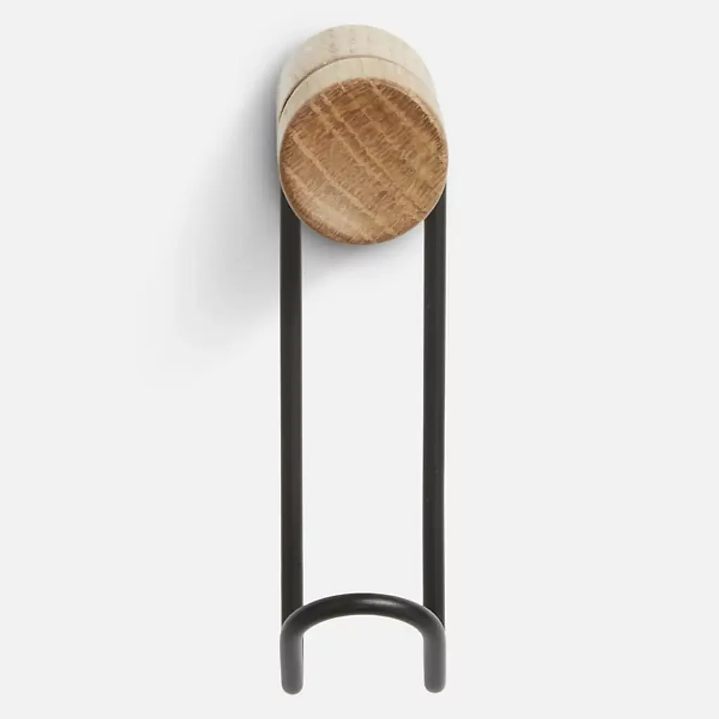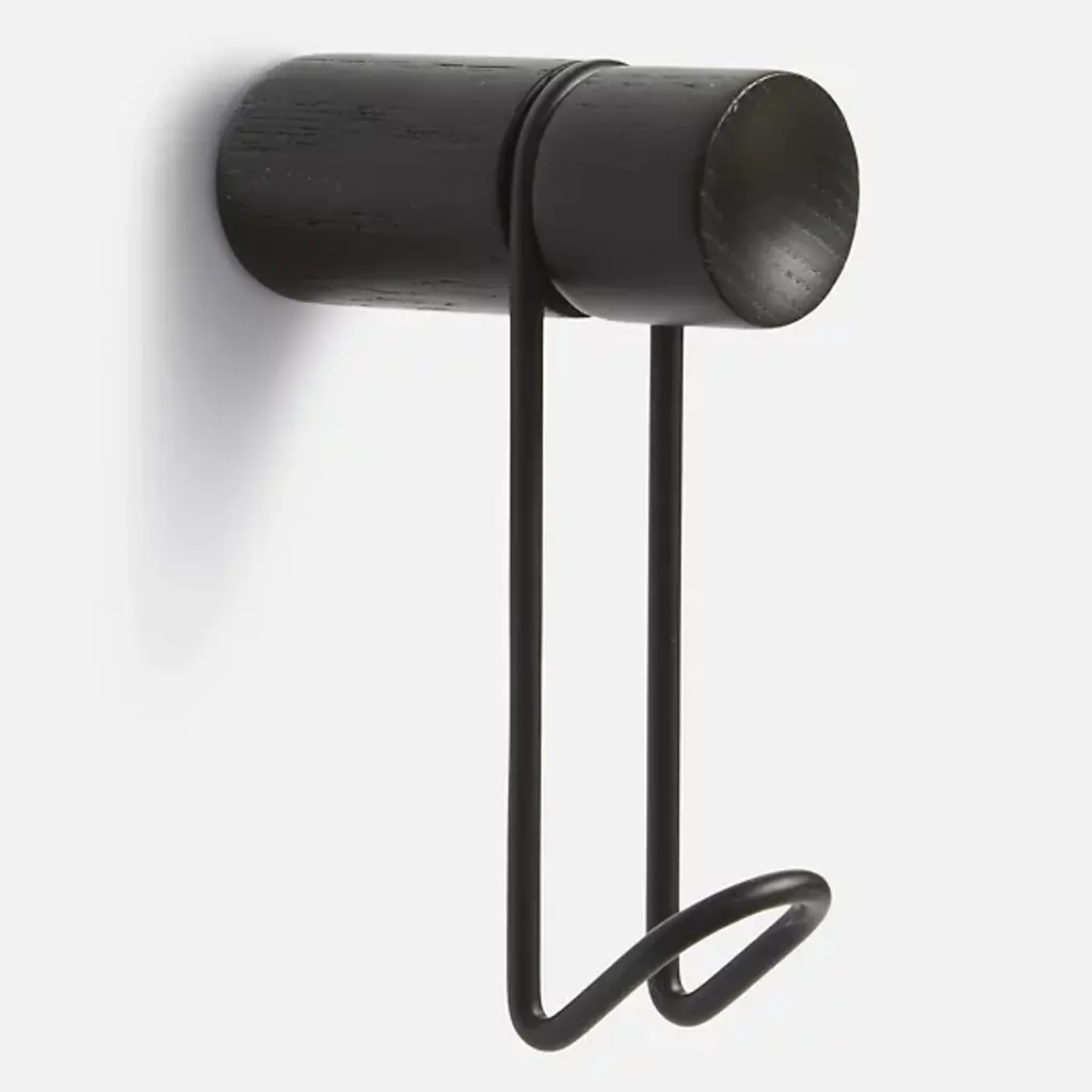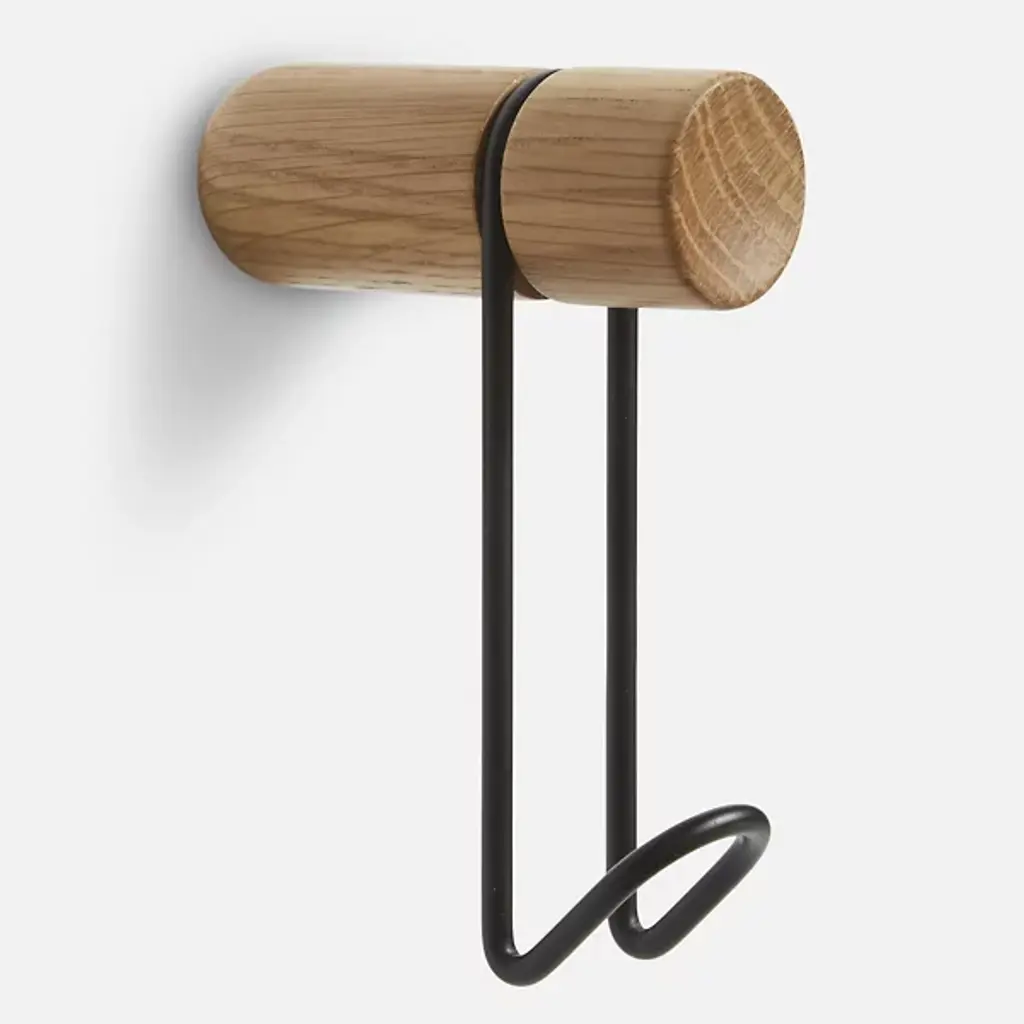 The Around Wall Hanger, Set of 2 from Woud offers a convenient way to display your favorite accessories. Each hanger features a slender metal framework with a cylindrical wooden peg at the end for a sophisticated presentation. The durable wood pegs securely mount your wall lowing scarves, ties, and belts to drape elegantly over the metal ends. The metal framework provides support while contributing to the hangers’ minimalist sensibilities.