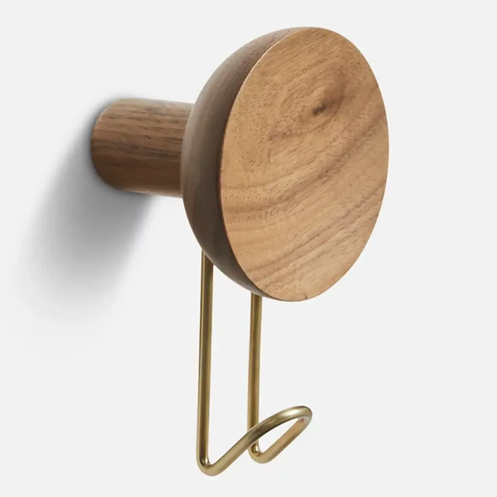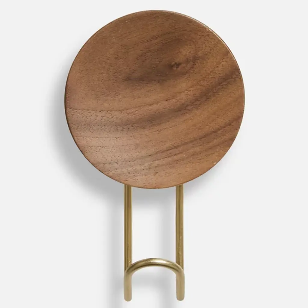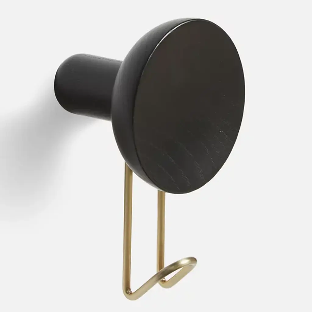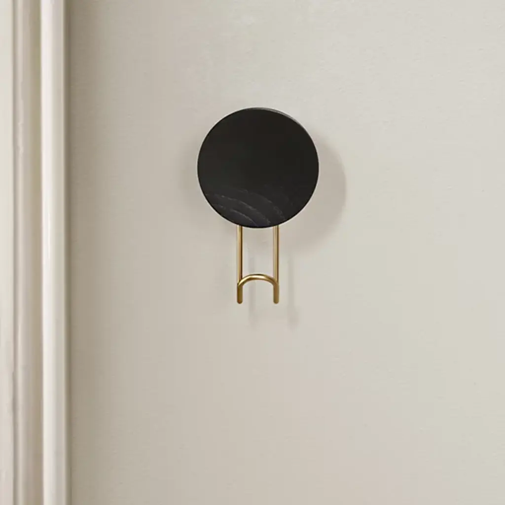 The Around Wall Hanger, Set of 2 from Woud offers a convenient way to display your favorite accessories. Each hanger features a slender metal framework with a cylindrical wooden peg at the end for a sophisticated presentation. The durable wood pegs securely mount your wall lowing scarves, ties, and belts to drape elegantly over the metal ends. The metal framework provides support while contributing to the hangers’ minimalist sensibilities.