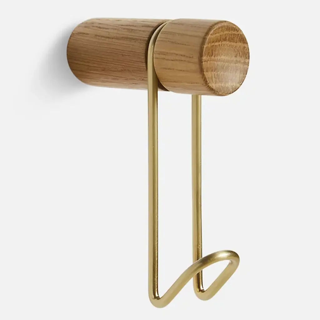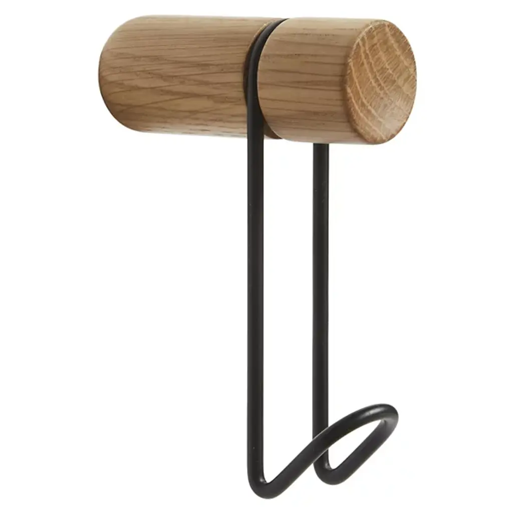 The Around Wall Hanger, Set of 2 from Woud offers a convenient way to display your favorite accessories. Each hanger features a slender metal framework with a cylindrical wooden peg at the end for a sophisticated presentation. The durable wood pegs securely mount your wall lowing scarves, ties, and belts to drape elegantly over the metal ends. The metal framework provides support while contributing to the hangers’ minimalist sensibilities.